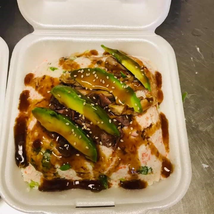 Queso Philadelphia, surimi, chile jalapeño, aguacate, salsa especial areky y arroz blanco al vapor