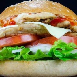 Pechuga doble de pollo, lechuga, tomate, cebolla, queso suizo, aderezo ranch y mayonesa
