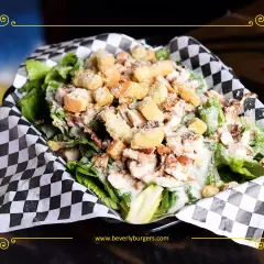 Pollo, lechuga romana, parmesano, croutones y aderezo cesar