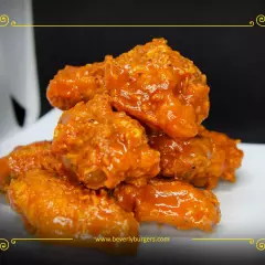 Deliciosas Alitas tradicionales, bañadas de aderezo a elegir, acompañadas de papas naturales en gajo.