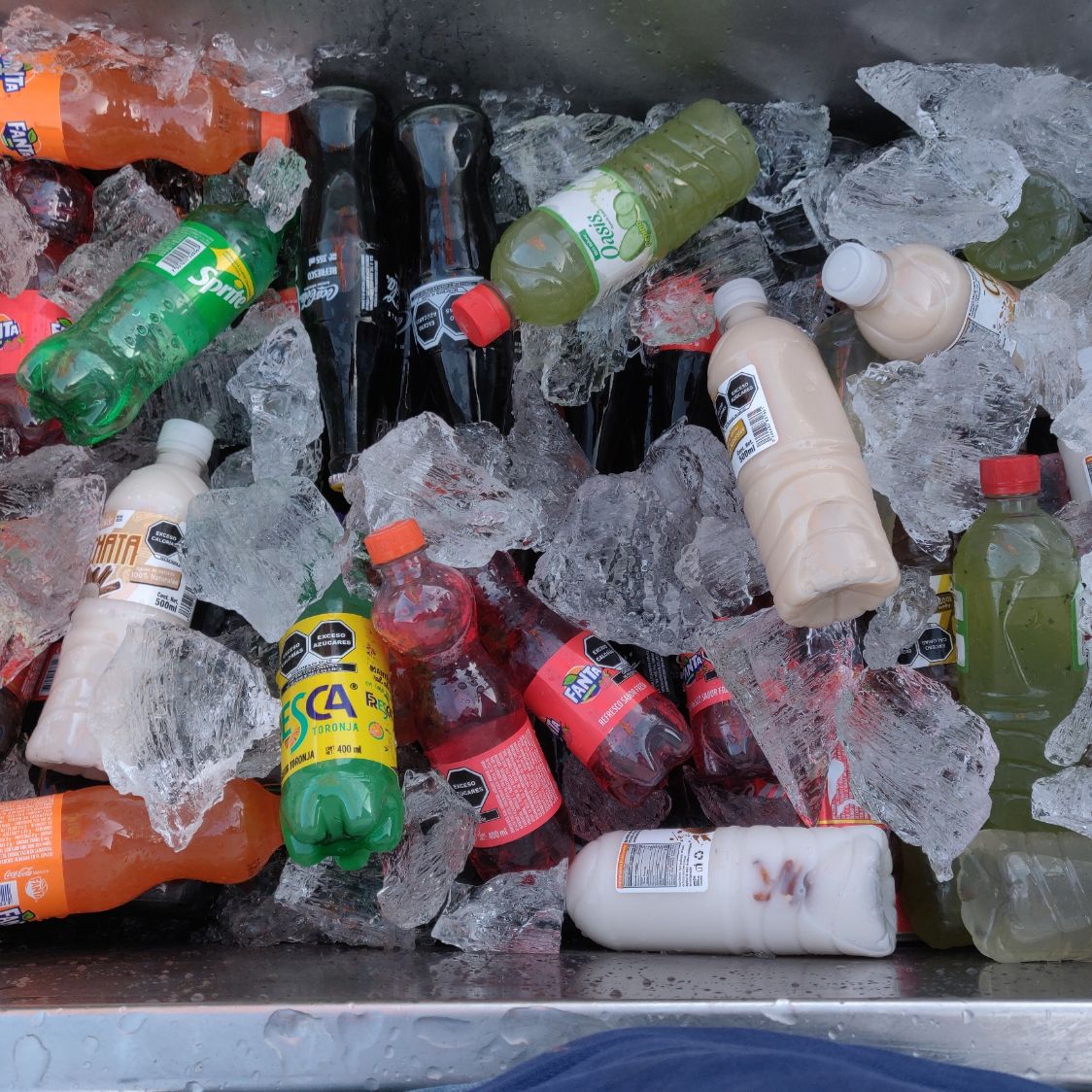 Aguas de sabor oasis, coca cola regular y sabores.