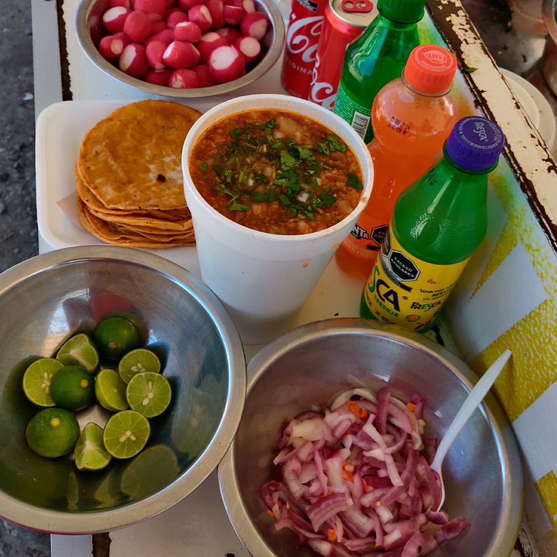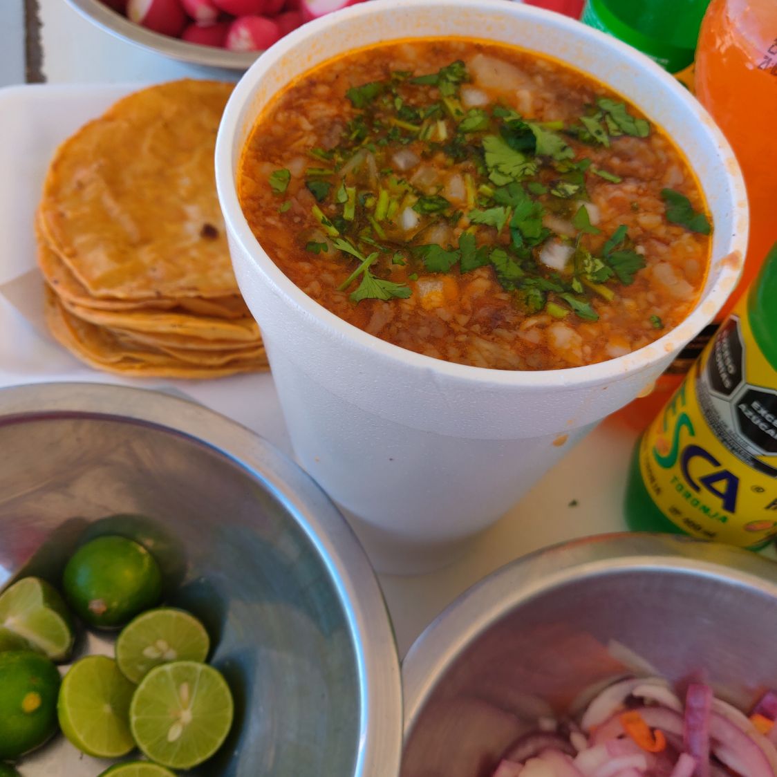 Orden grande 1lt, coca mini, consomé 12, tortilla extra.