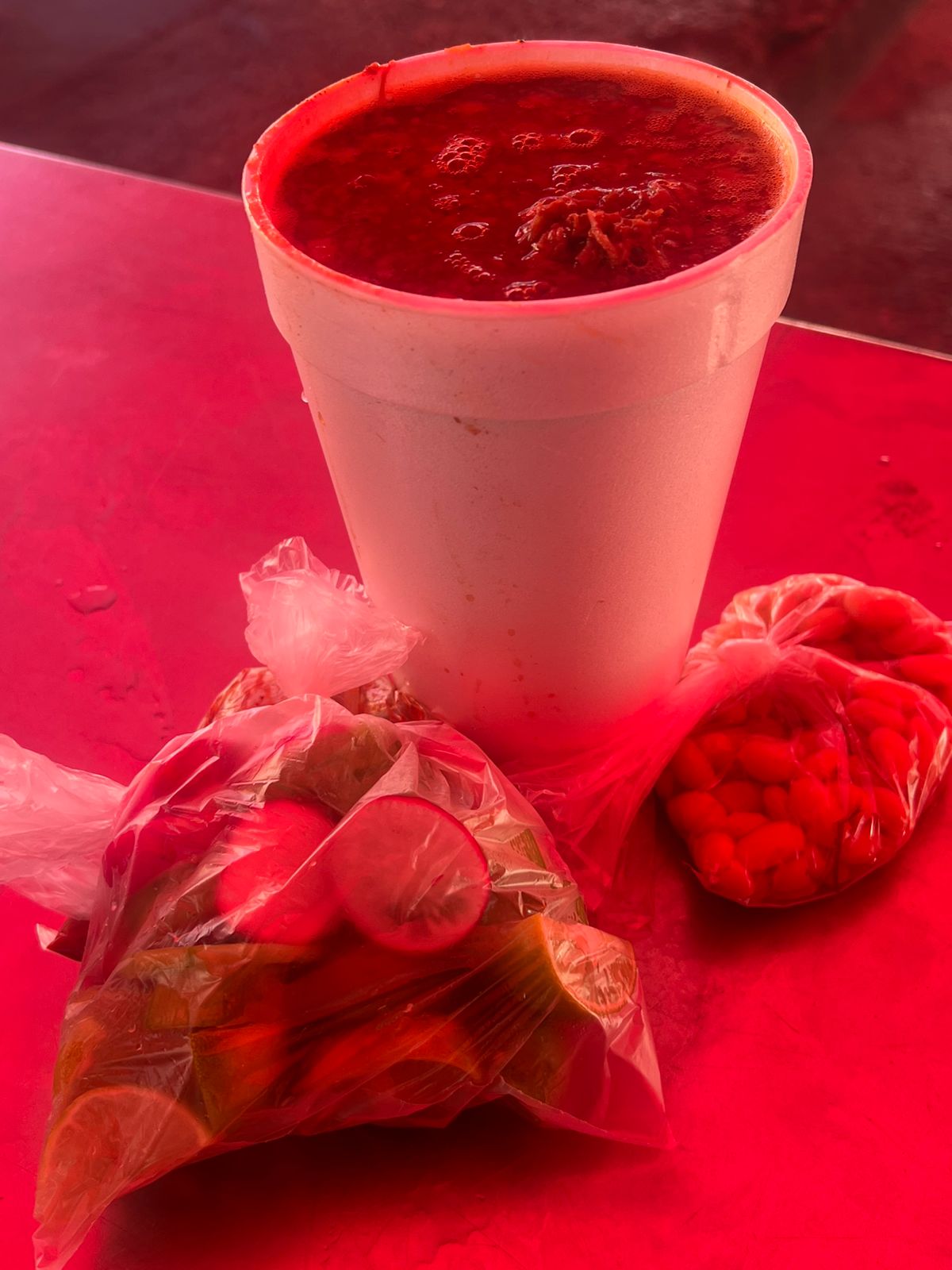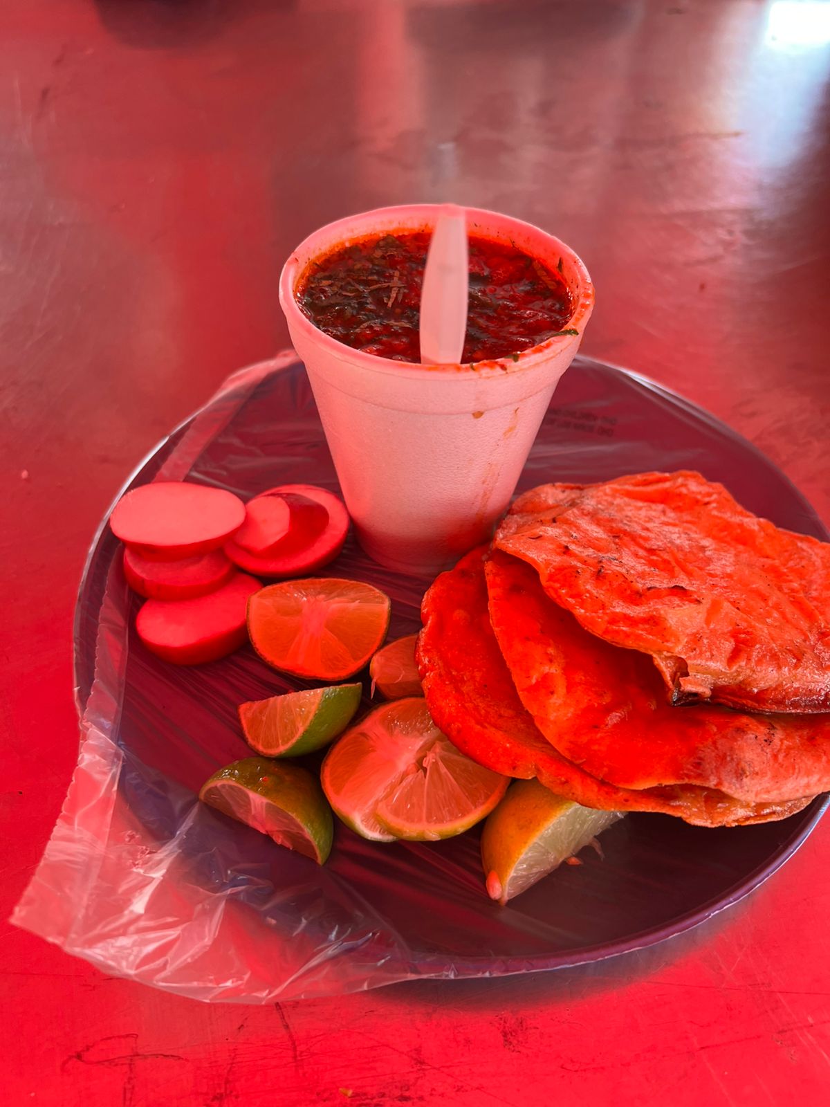 vaso de 1tr , con cebolla, cilantro, salsa, limones, tortillas