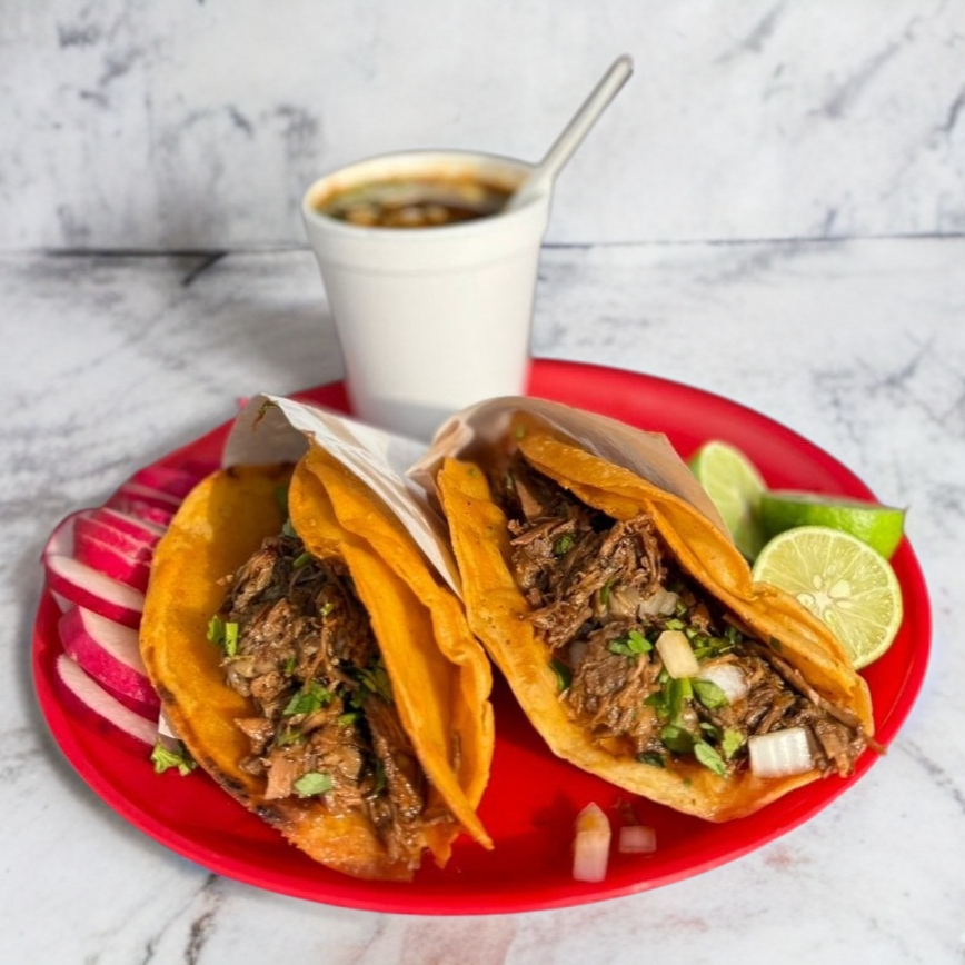 🌮🥤🥣 Combo los compadres de Birria 🔥 Disfruta 3 tacos de birria bien servidos, con su toque jugoso y llenos de sabor 🤤 + un vaso de consomé calientito 🥣 + una soda bien fría 🥤 Todo acompañado con 🧅 cebolla, 🌿 cilantro y 🌶️ salsita al gusto