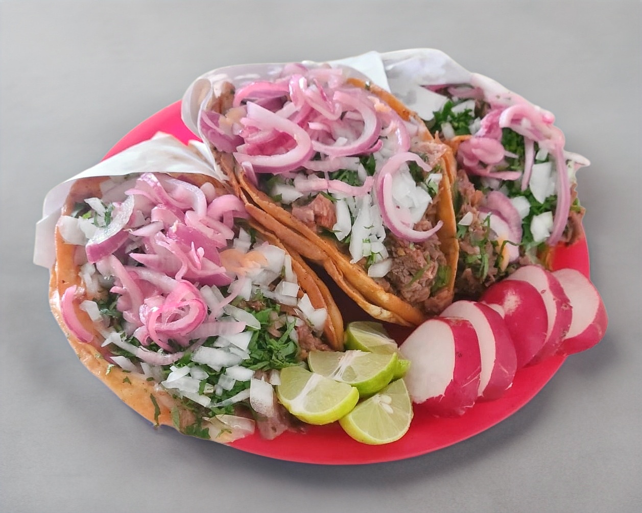 1 Quesadilla de tortilla de maíz con birria de res, cebolla, cilantro y salsa.
