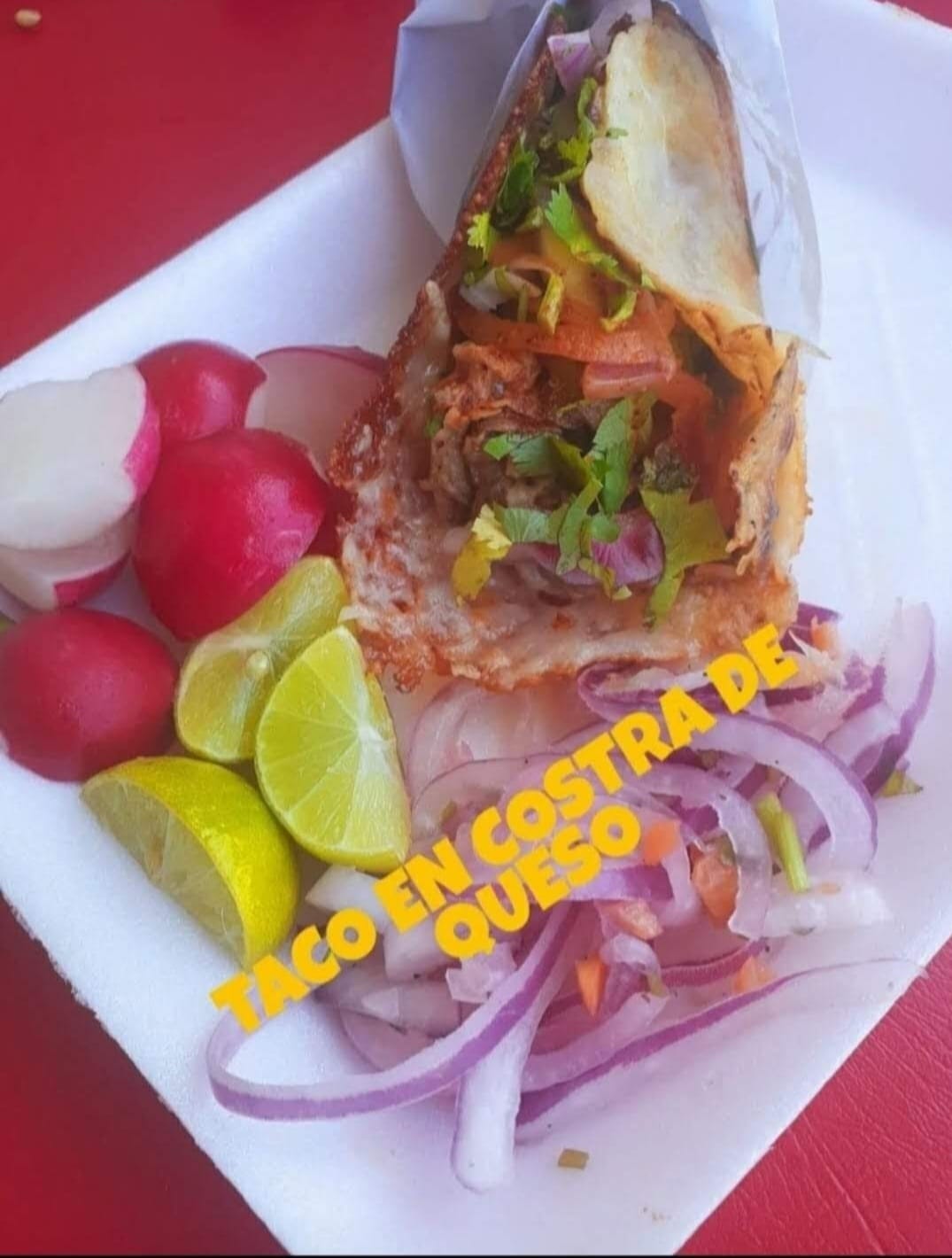 Taco con costra de queso.