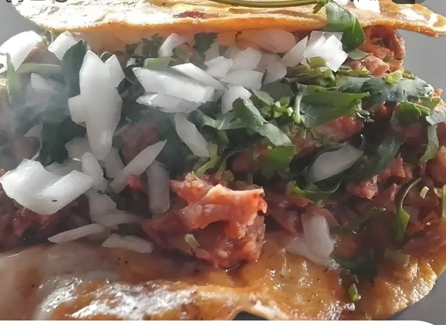 Quesadilla en plancha con relleno de birria.