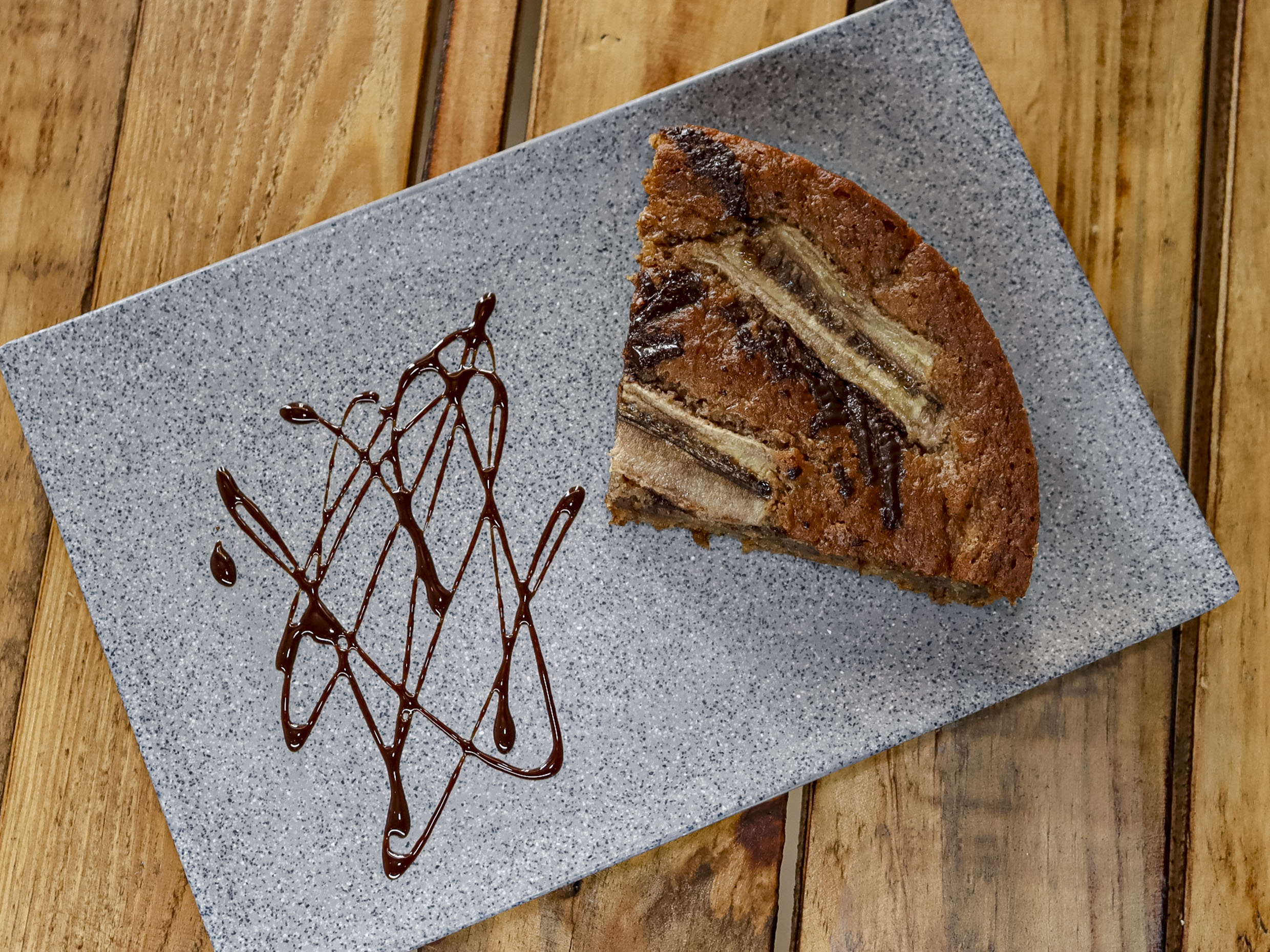 Crepa de coco acompañada de plátano, nutella y nuez.