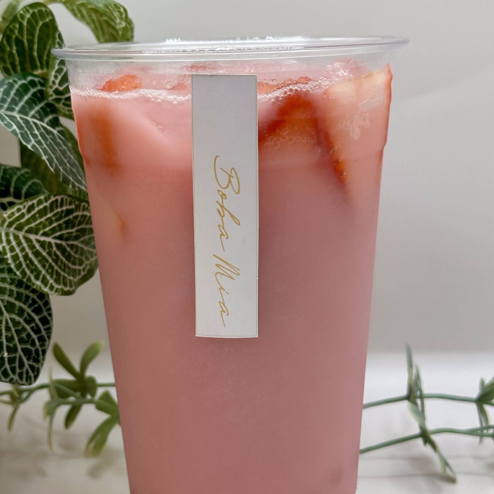 Frappe Barbie , sabor Fresa-Vainilla con cheese foam en el vaso y en el fondo perlas explosvas sabor fresa.