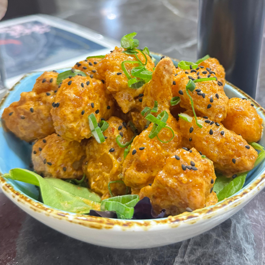 CAMARONES EMPANIZADOS BAÑADOS EN SALSA SPICY