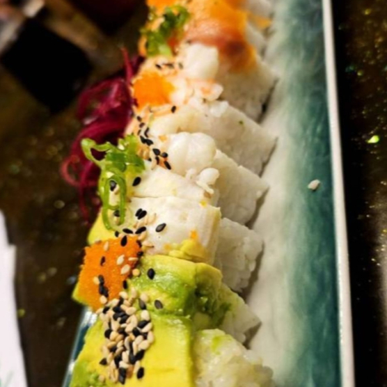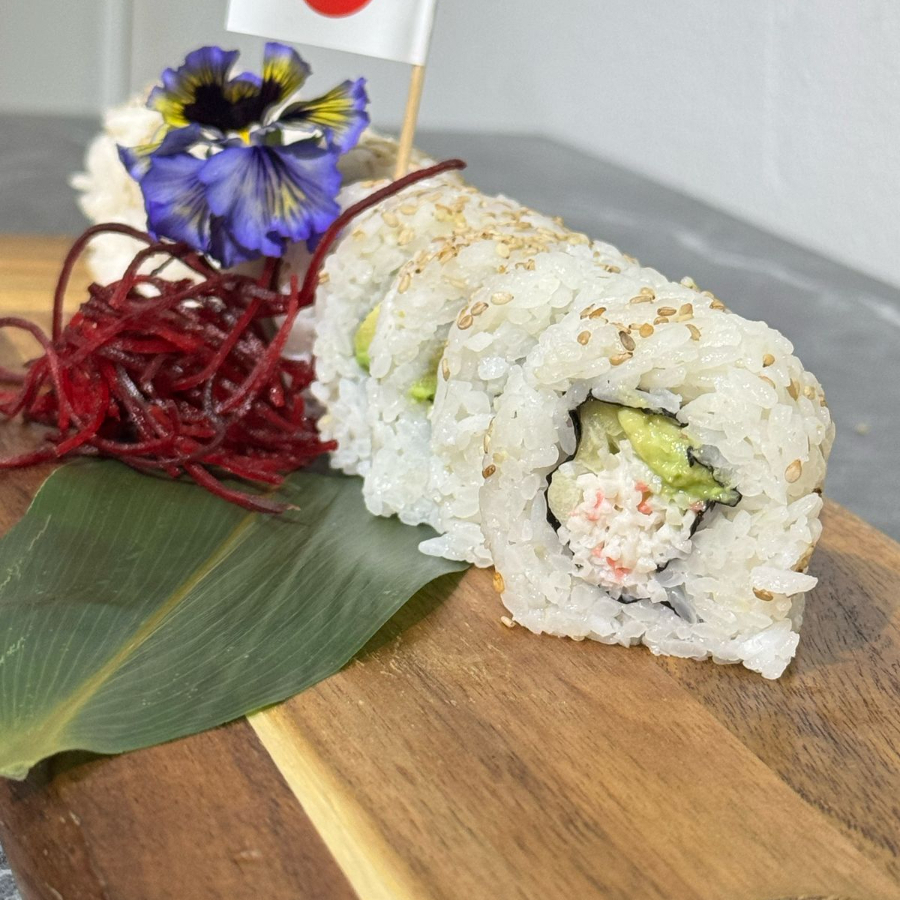 RELLENO DE CAMARON AGUACATE Y PEPINO ESTA FORRADO DE QUESO CREMA