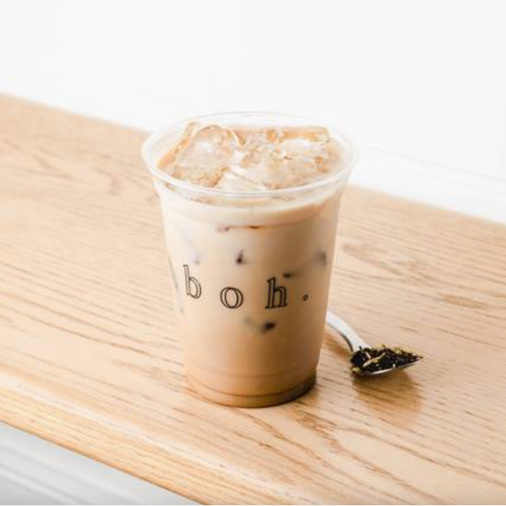 Leche mezclada con té chai, 1 shot de espresso y hielos, 16 oz.