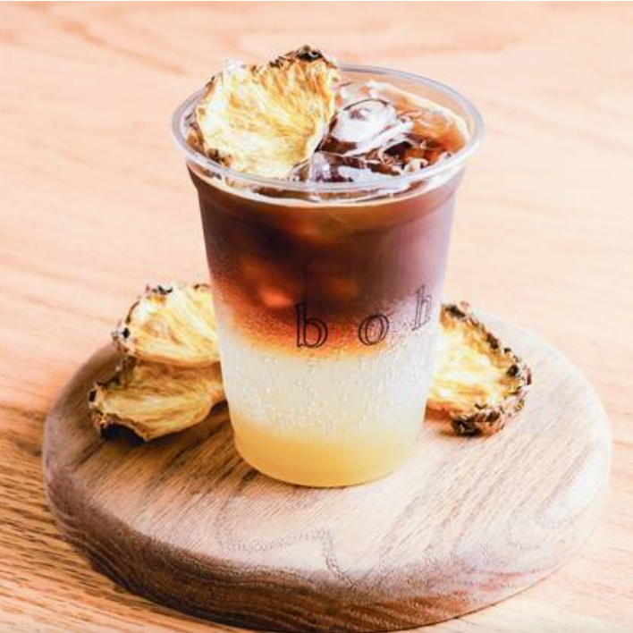 2 oz De espresso con agua tónica, zumo de limón, piña y hielos, 16 oz.