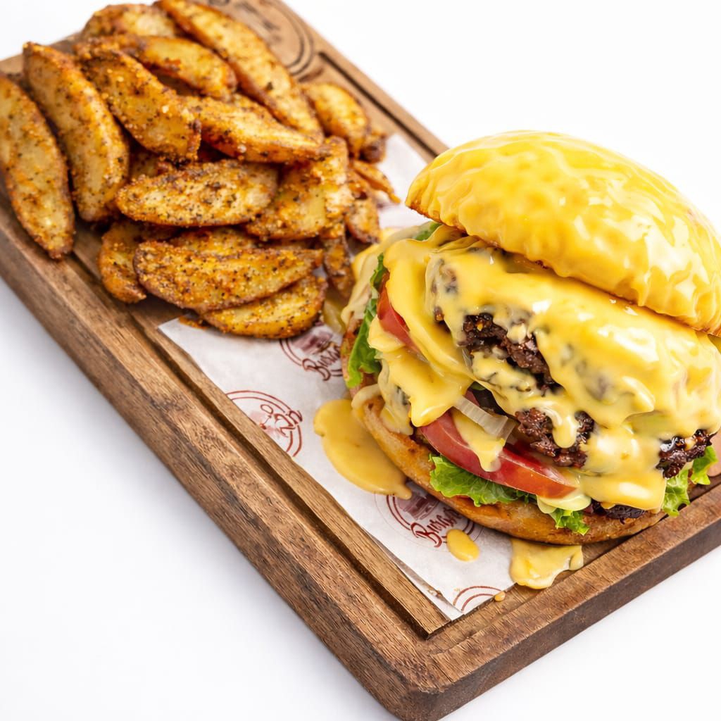 Doble carne de res, queso, tocino, aros de cebolla, guacamole, BBQ, chipotle o búfalo, mayonesa, cátsup y mostaza.