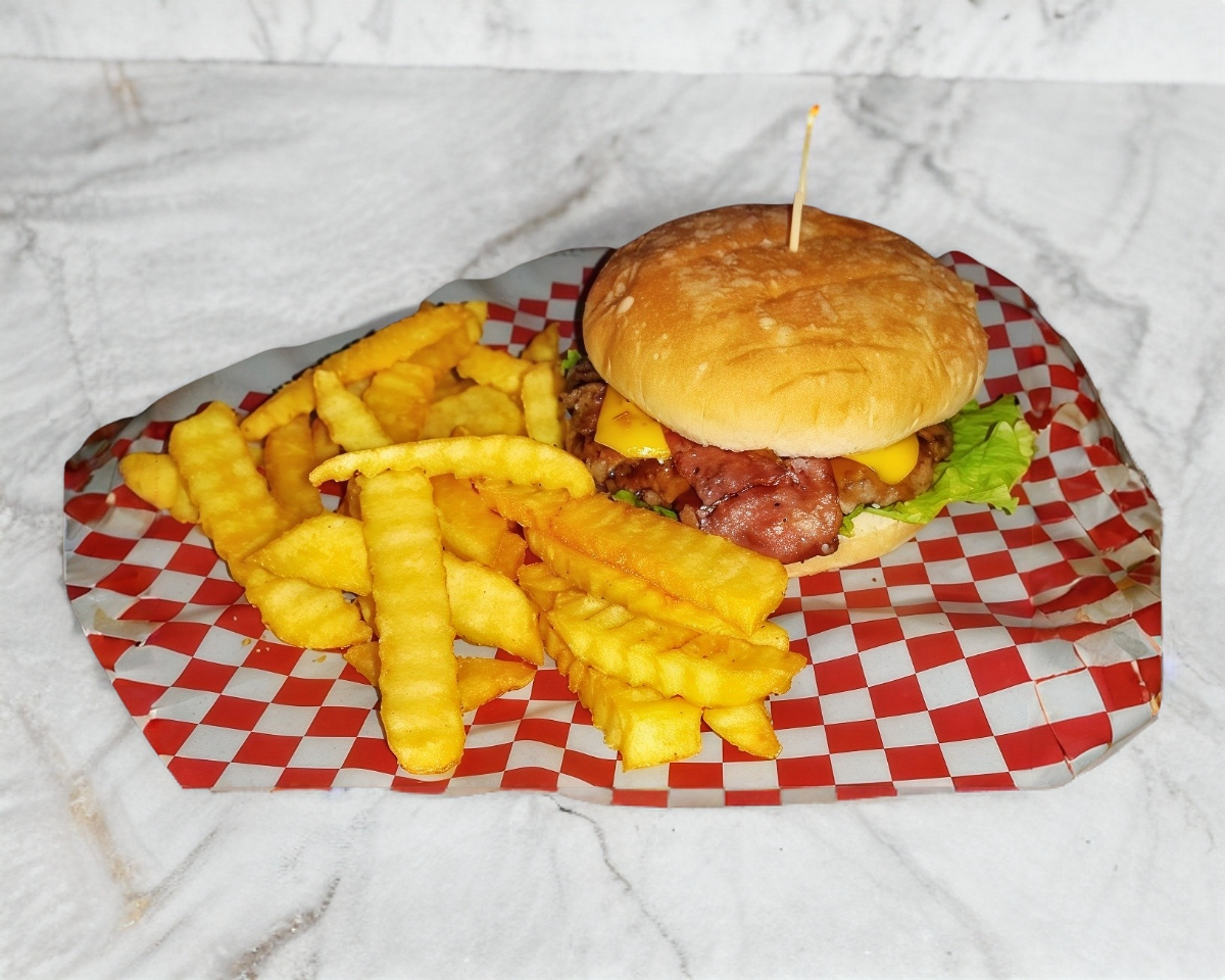 carne de res,pan,queso amarillo,aros de cebolla frita,lechuga,tomate,cebolla,aderezo especial,kepchup,moztaza
