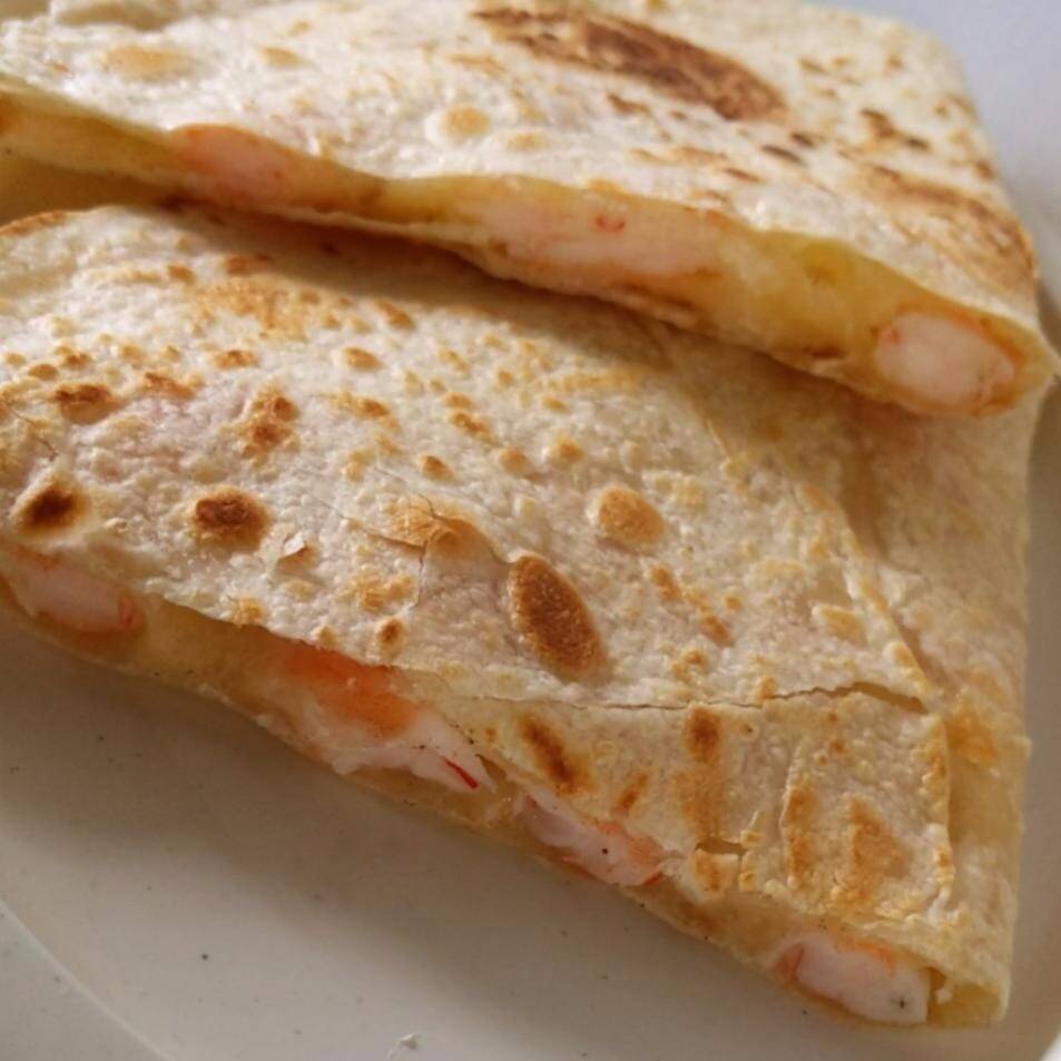 Nuestra quesadilla solo lleva queso y camarón a la mantequilla, no lo inflamos con otros ingredientes, mas la tortilla es de 15cm, tortilla sobaquera queremos que tengas una rica experiencia al comerlo. Se sirve con salsa bandera 2 oz y 1 salsas picantes 3/4 oz. no incluye otra cosa.