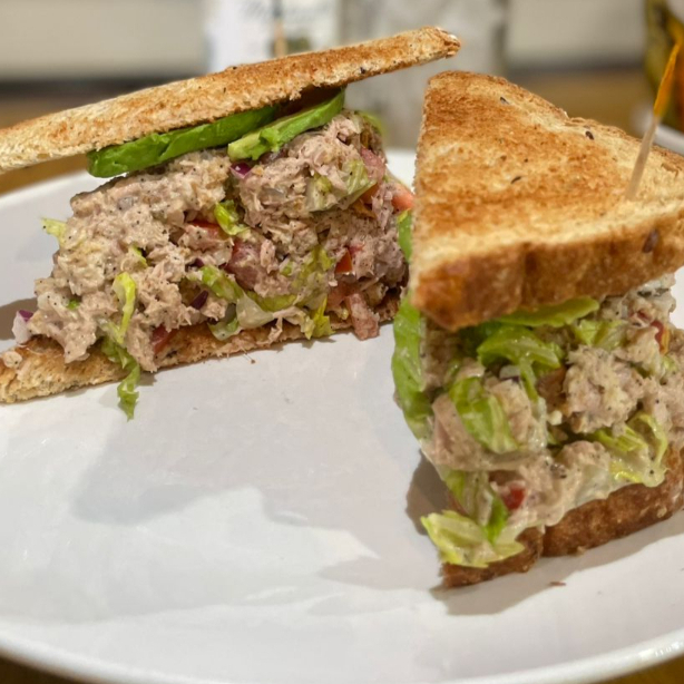 Mezcla de atun con lechuga, tomate, cebolla, mayonesa, sal pimienta y aderezo de la casa, acompañada de galleta, totopos o arroz blanco a eleccion