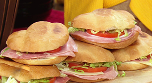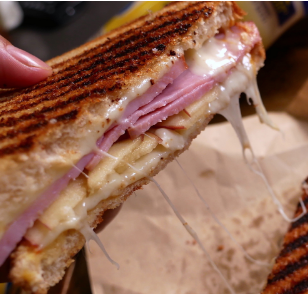 Torta de milanesa con jamón, queso monterrey, frijoles puercos, malteada de 20 oz. Acompañado de salsa.
