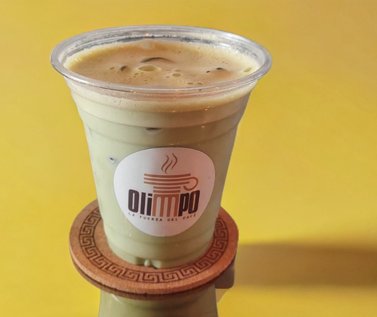 Bebida de te verde en polvo acompañado con miel y un toque de extracto de vainilla, leche de su elección y hielo.
