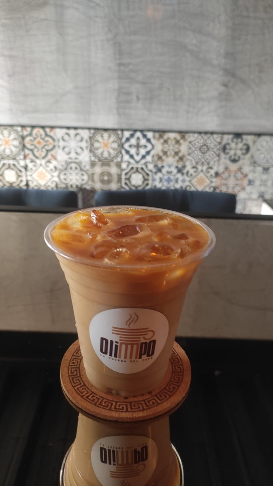 Bebida especialidad de la casa hecha con espresso y un polvo de caramelo especial acompañada de leche de su preferencia