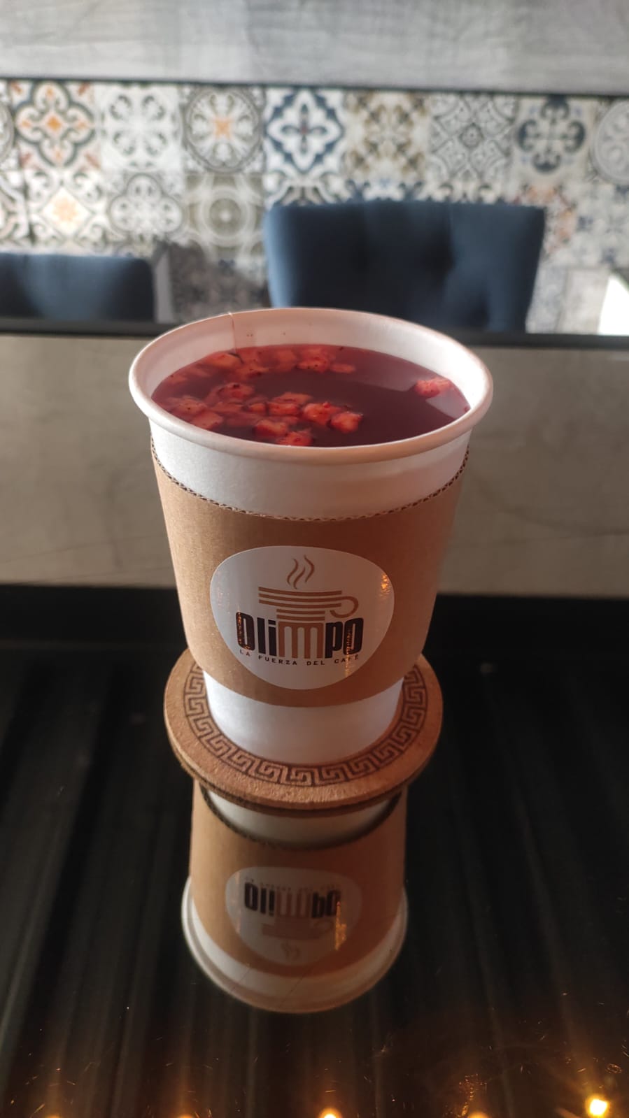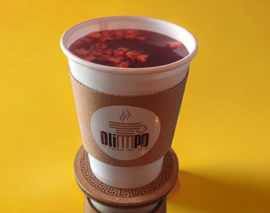 Bebida caliente con fruta deshidrata de su elección acompañada de endulzante de su preferencia.