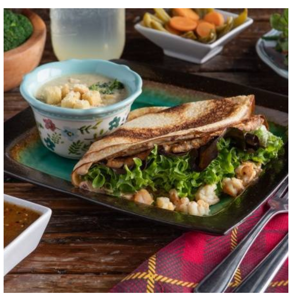 Champiñones frescos de la región preparados con queso crema natural o chipotle, espinacas, tomate y cebolla. Acompañado con ensalada de papa hecha en casa.