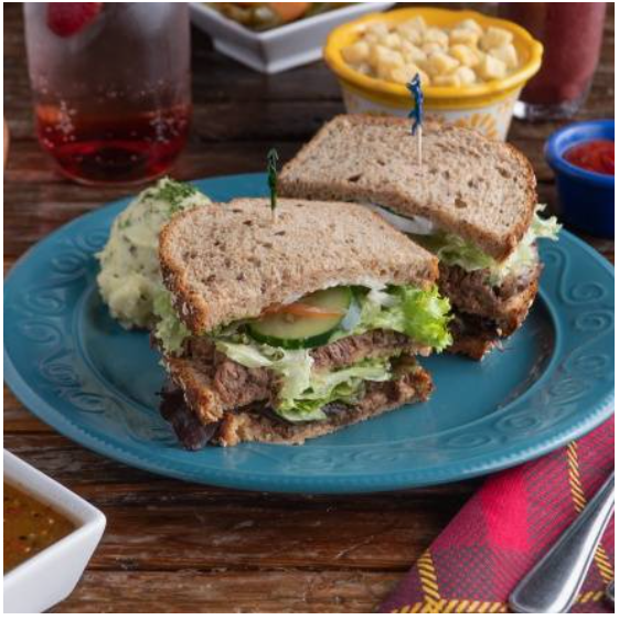 Preparado con queso crema natural o chipotle, espinacas, tomate y cebolla. Acompañado con ensalada de papa hecha en casa.