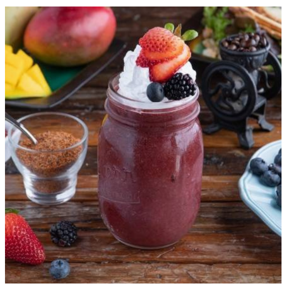 Deliciosas bebidas refrescantes preparadas a base de jugo y frutas naturales congeladas. Tamaño: 16 oz.