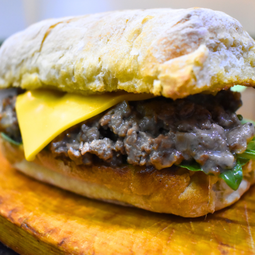Sandwich de carne de res, pan ciabbatta con queso mozzarella, lechugas, tomate y queso americano,