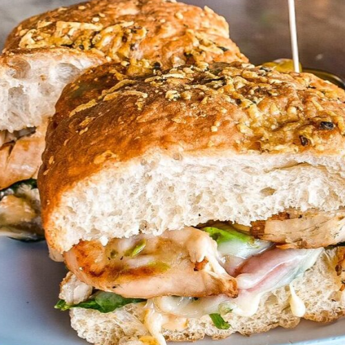 PAN FOCCACCIA CON PECHUGA DE POLLO, ESPINACAS, TOMATE, AGUACATE, QUESO