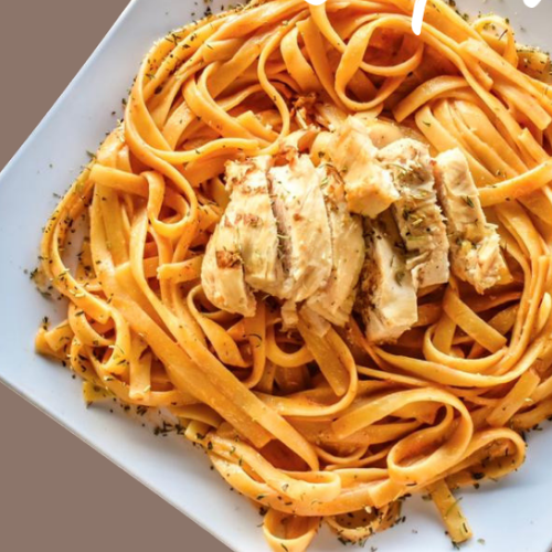 FETTUCCINE EN ALFREDO CON POLLO A LA PLANCHA