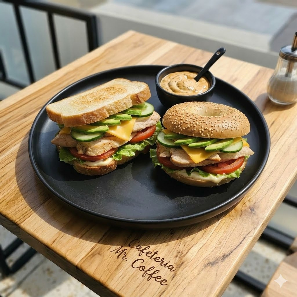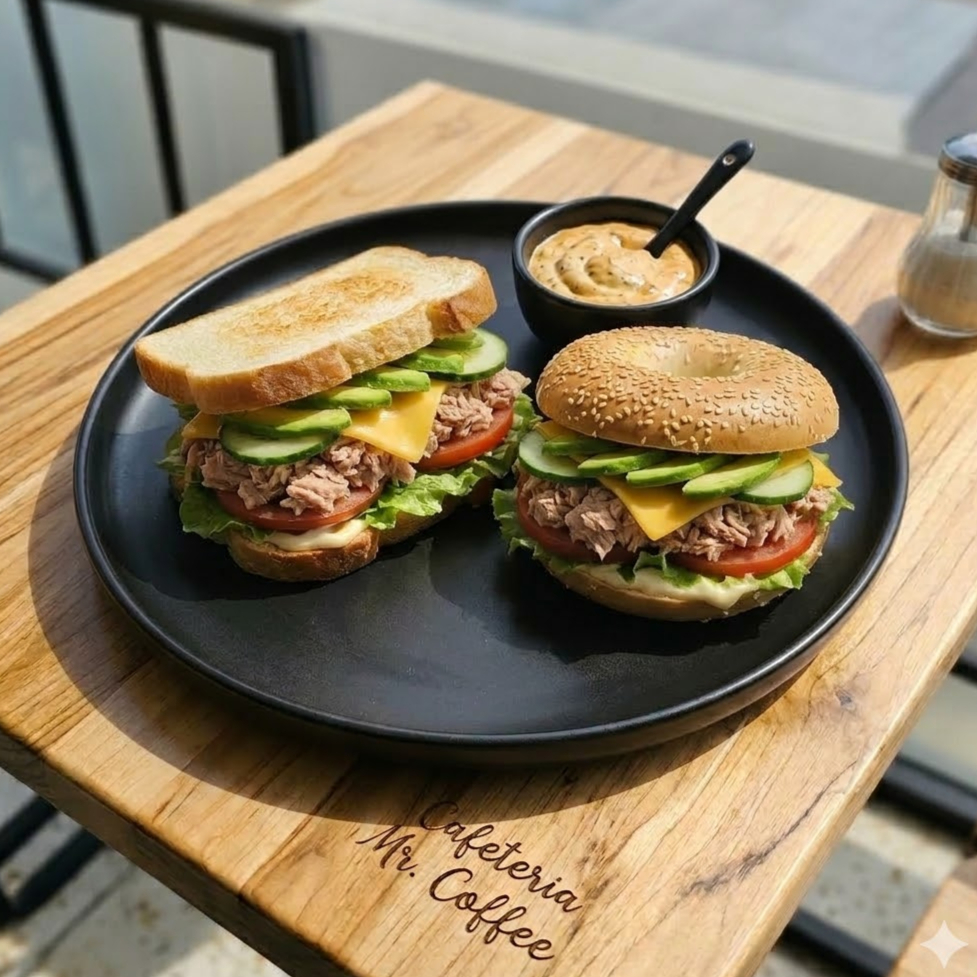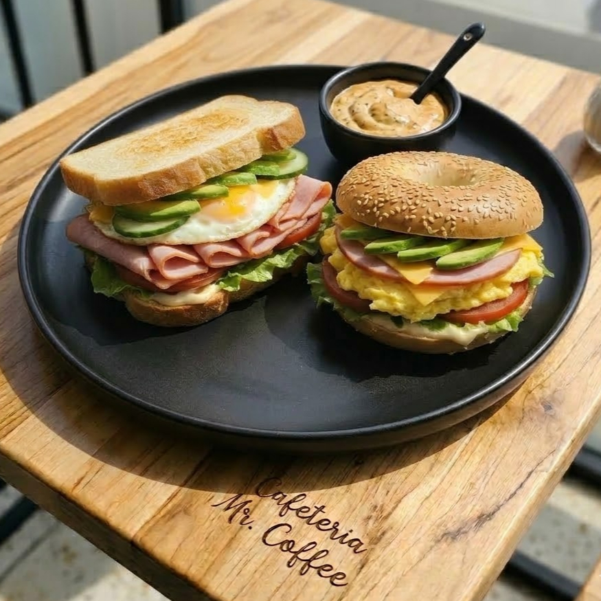 Cuernito de jamón o huevo a elegir la proteína, mayonesa, lechuga, tomate, aguacate, elige tu aderezo.
