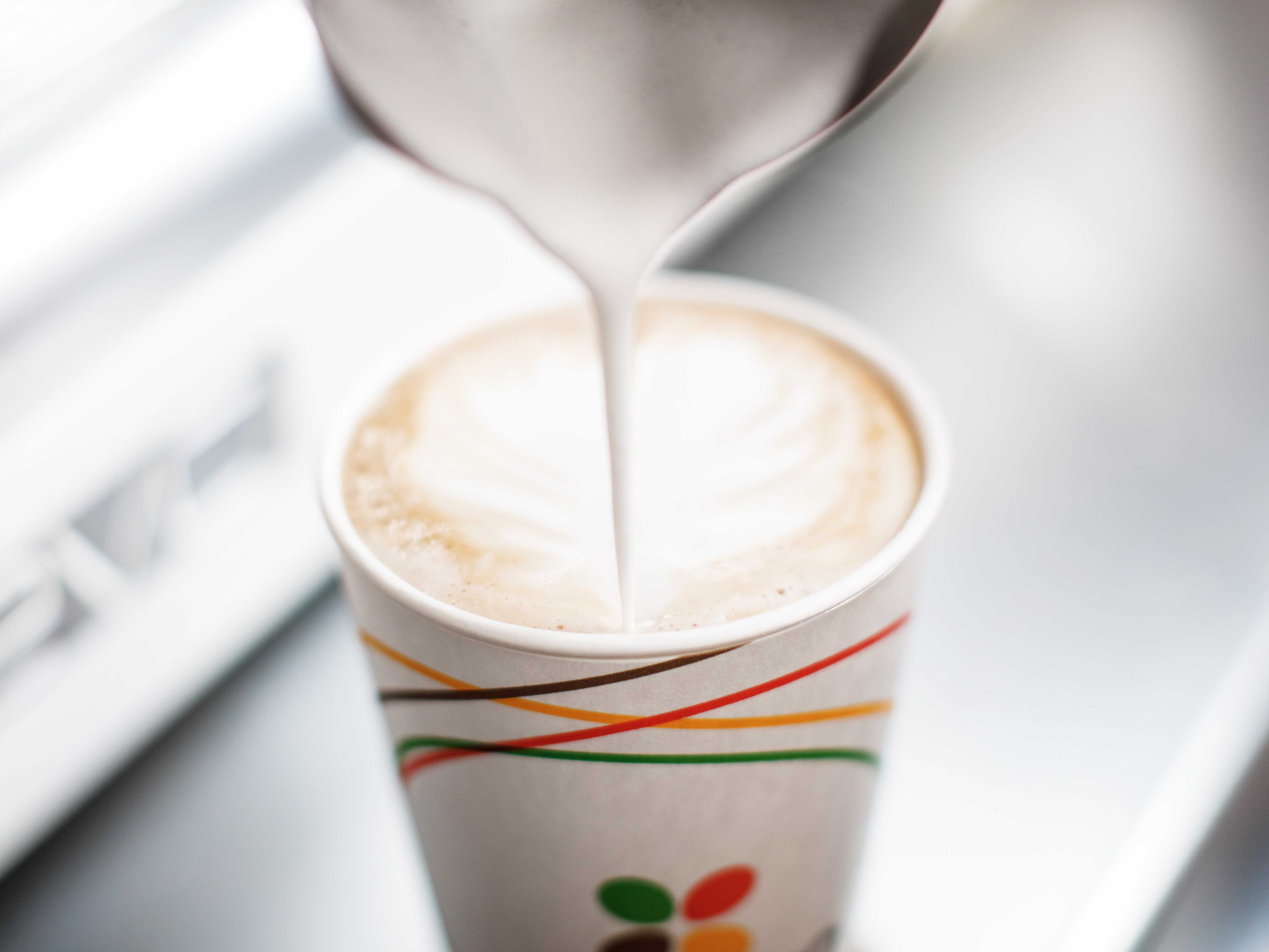 Latte servido con hielos. Puedes elegir tu sabor favorito.
