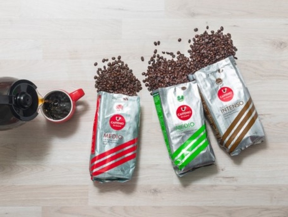 Nuestro delicioso café en grano de calidad Pluma Hidalgo en presentación de 500 gramos.