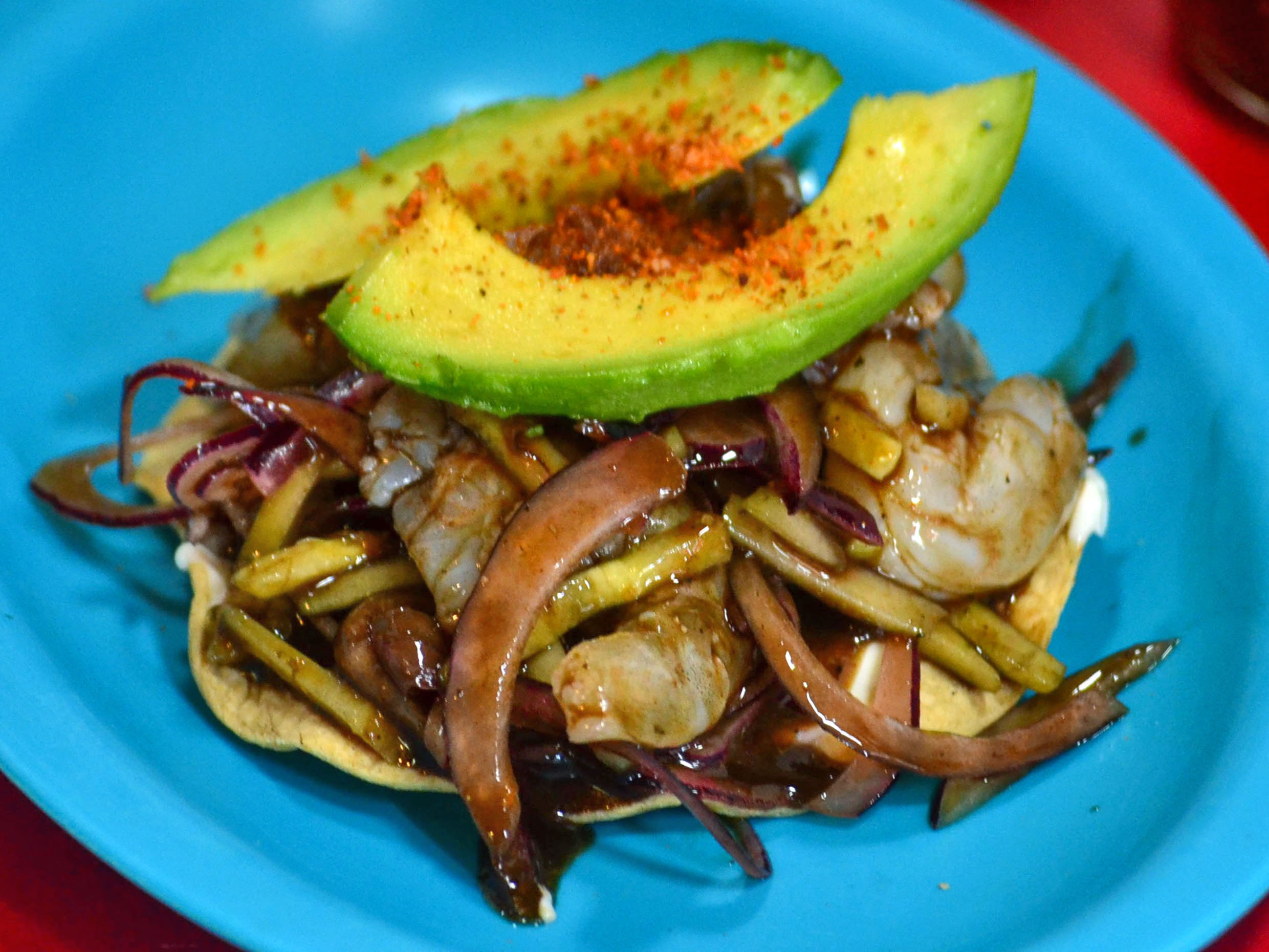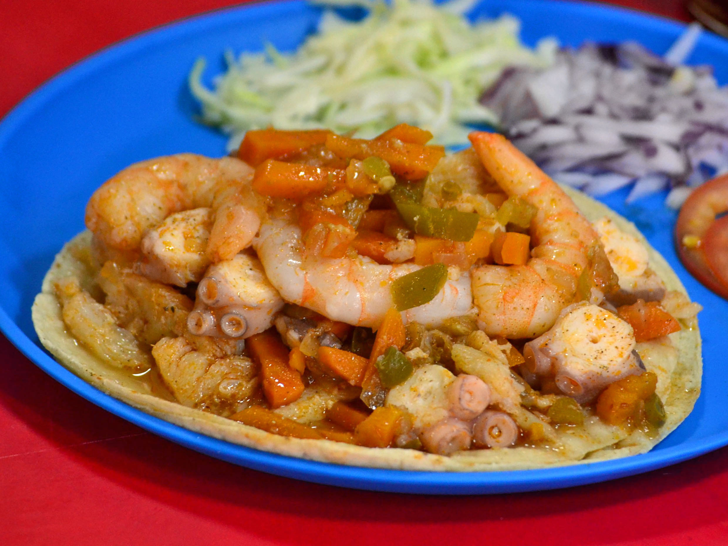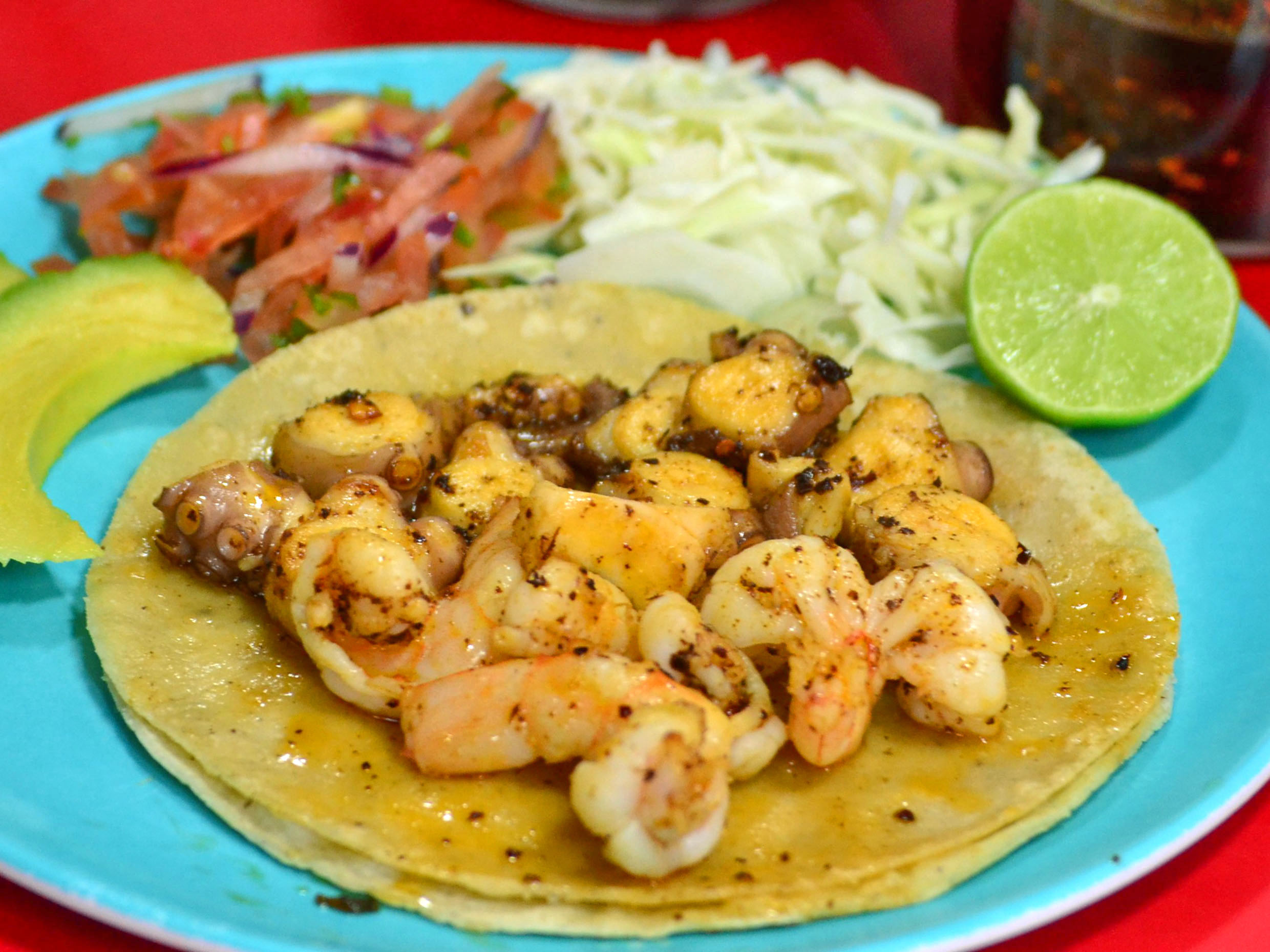 Delicioso taco de camarón y pulpo.
