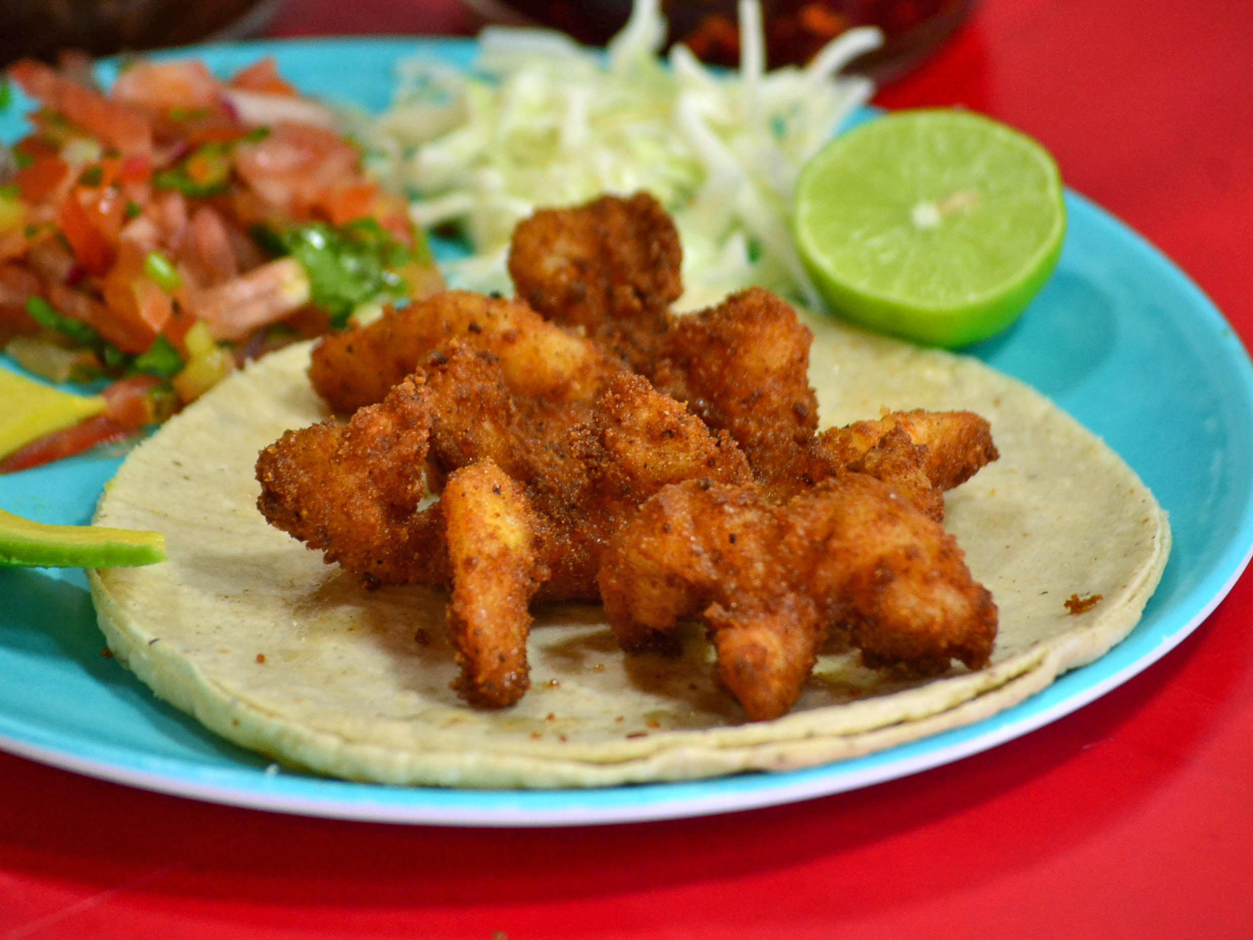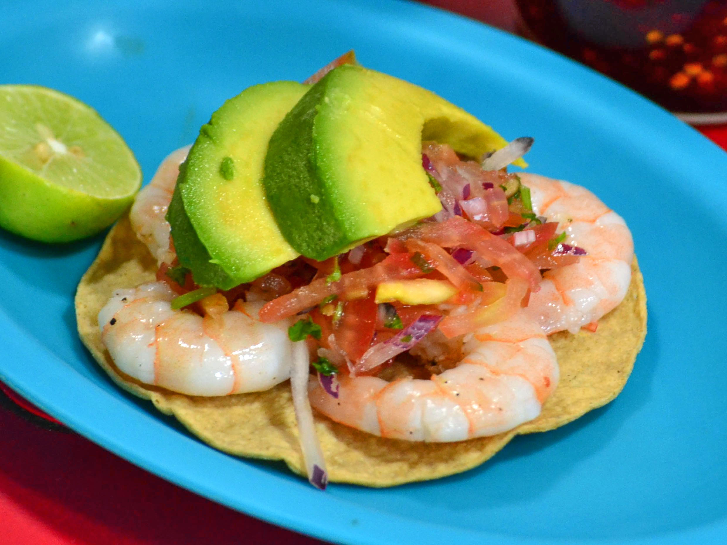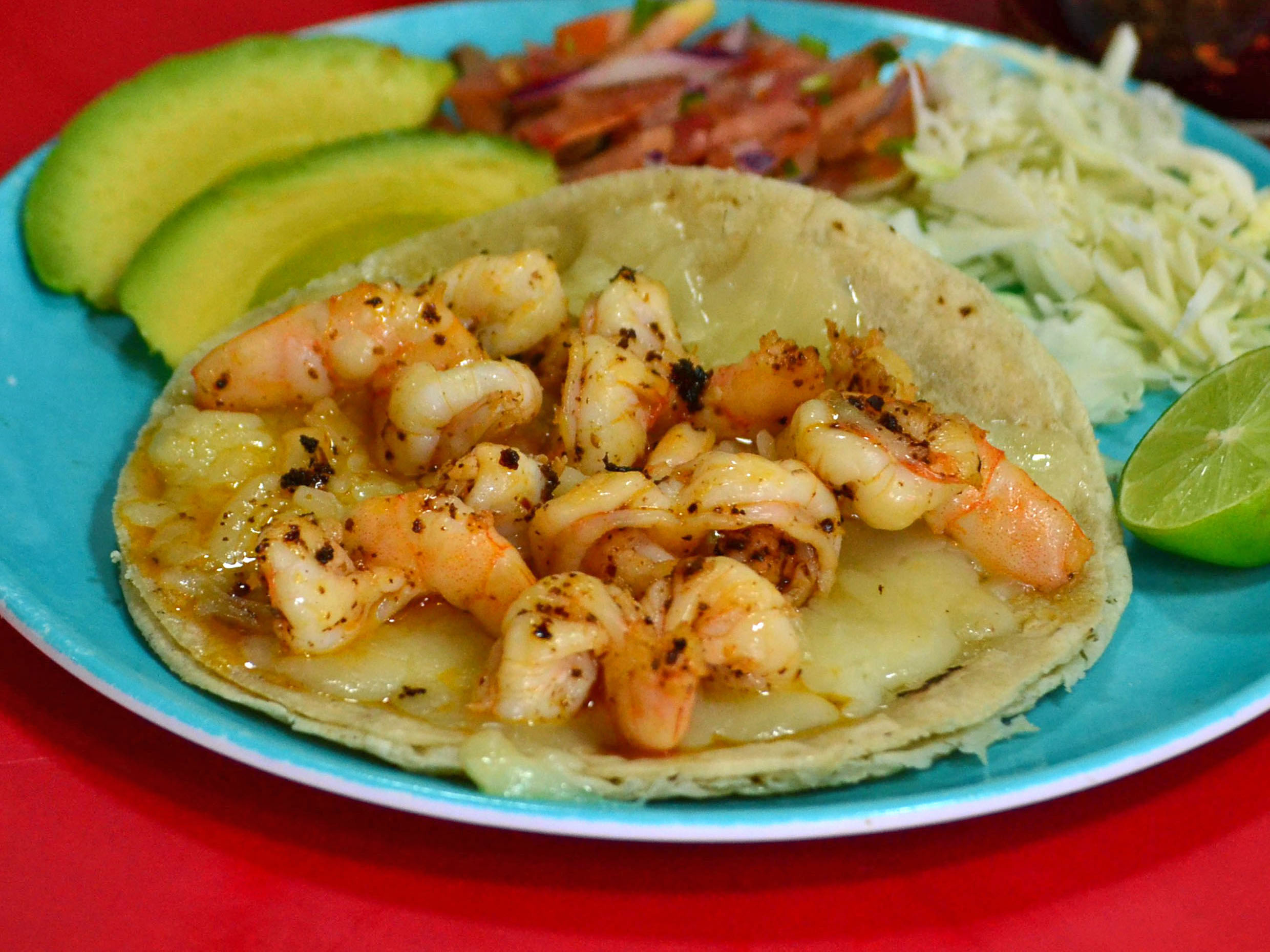 Delicioso taco de camarón.