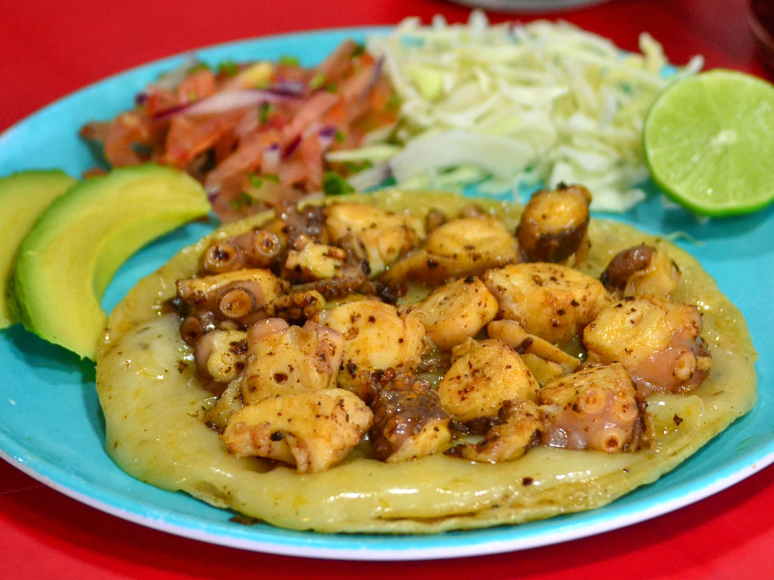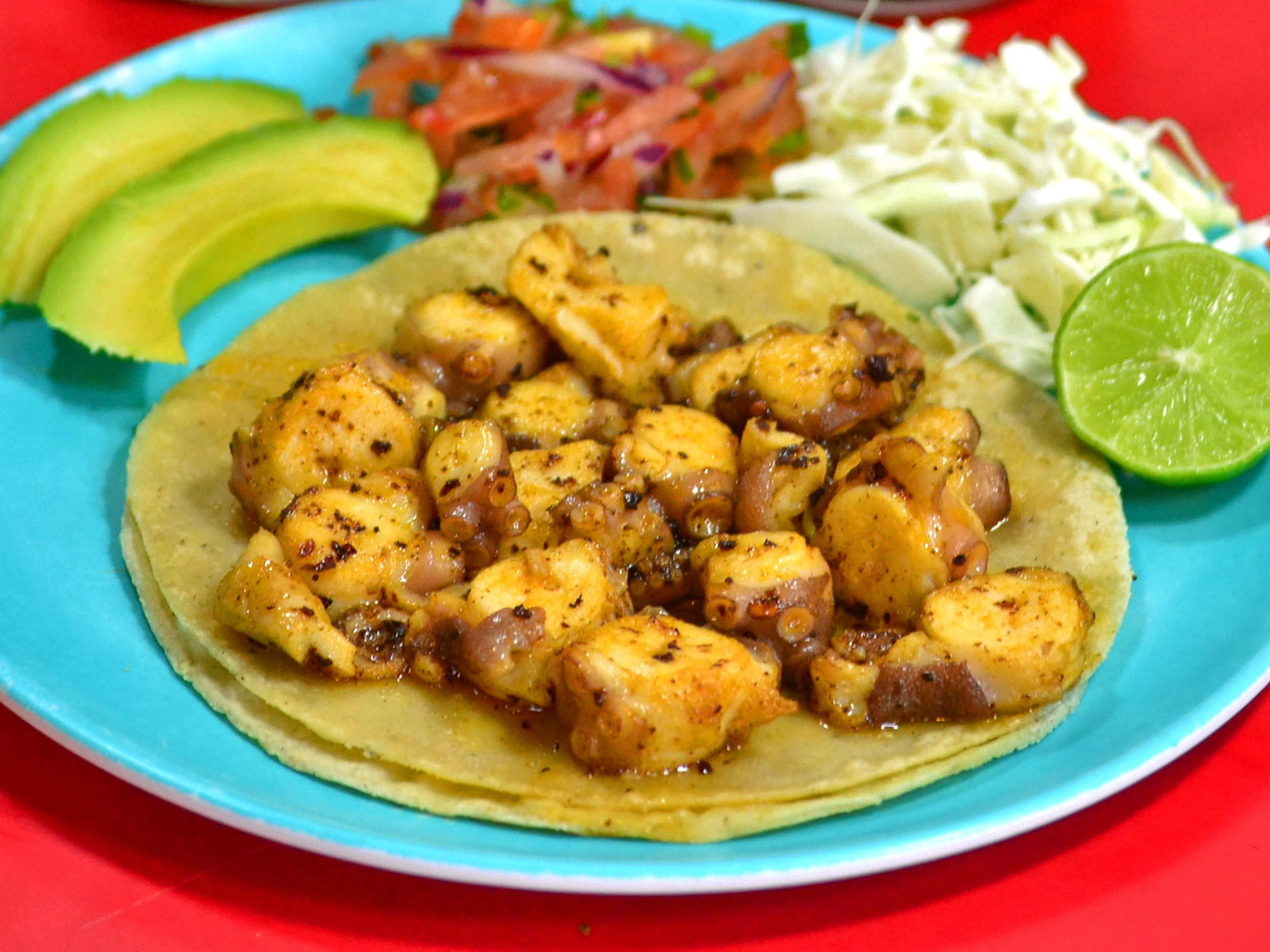 Delicioso taco de pulpo a tu elección.