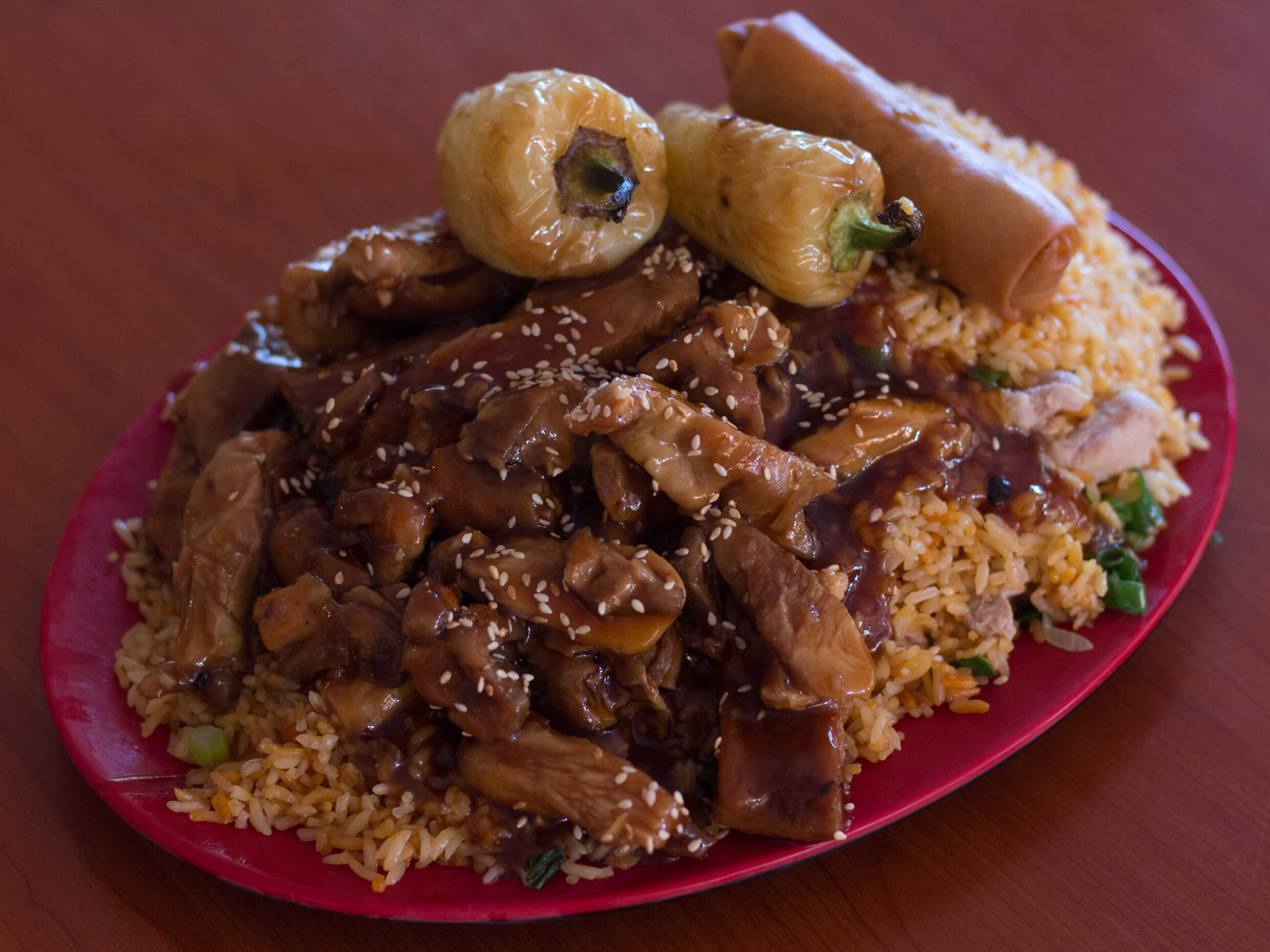 Pollo teriyaki, arroz con pollo, chun kun, chile asado