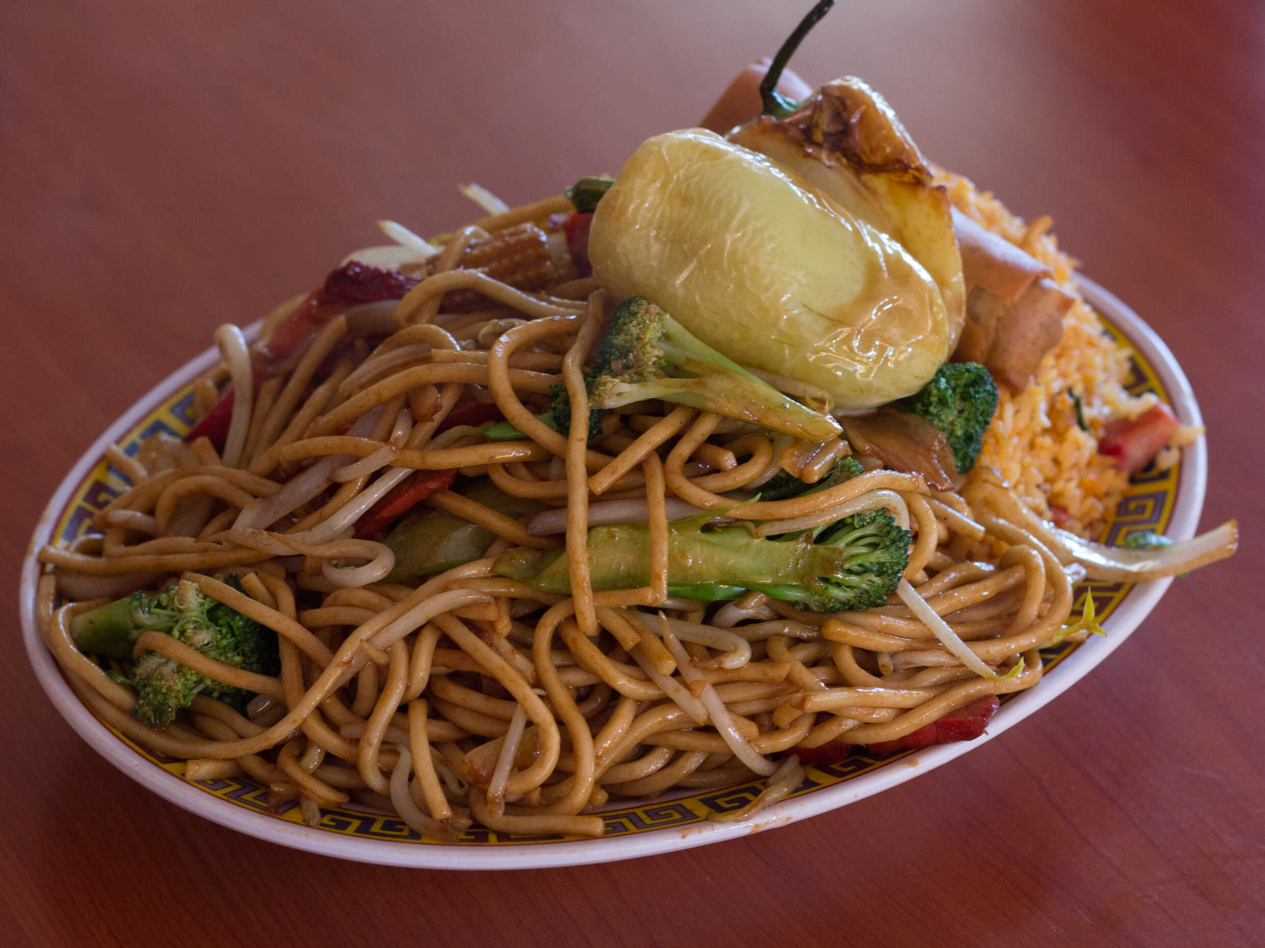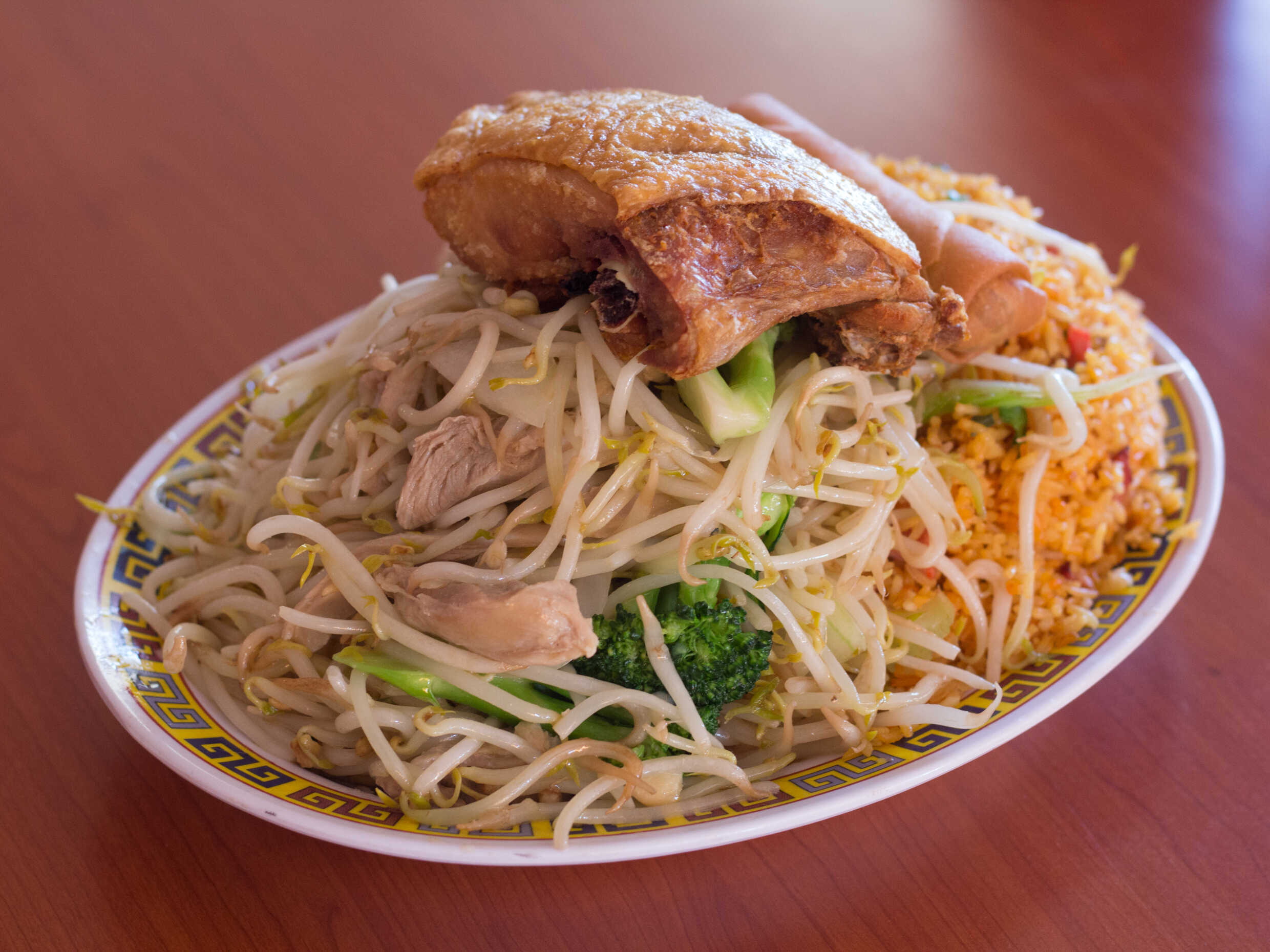Low mein de carnitas, arroz con puerco, chun kun, chile asado