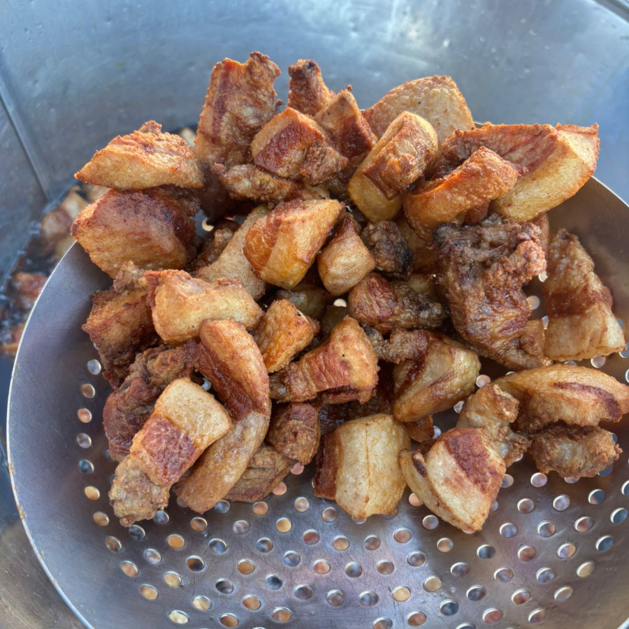 Delicioso y crujiente chicharrón carnudo de cachete.