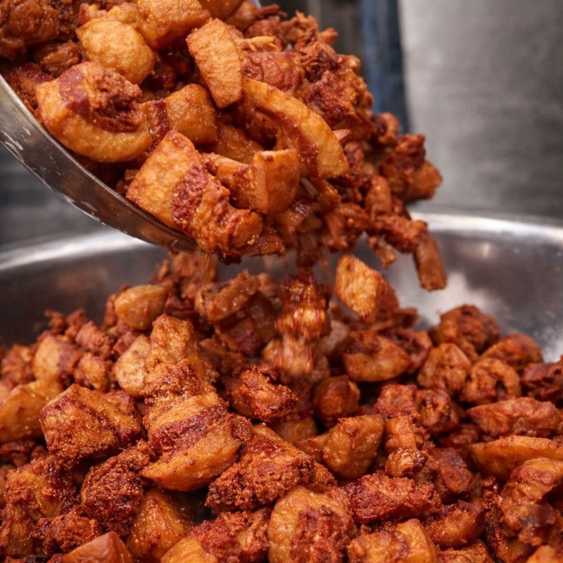 Trozos de pork belly cocidos lentamente hasta quedar jugosos por dentro. Cada mordida es una explosión de sabor, con ese toque doradito que hace adicto. Acompáñalos con tortillas, salsa y limón.