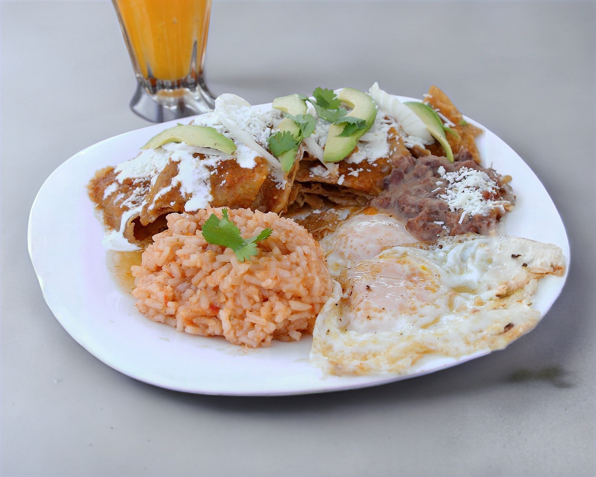 Chilaquiles Rojos con Huevo, Arroz y Frijol*1 + Elige tu Licuado Favorito*1