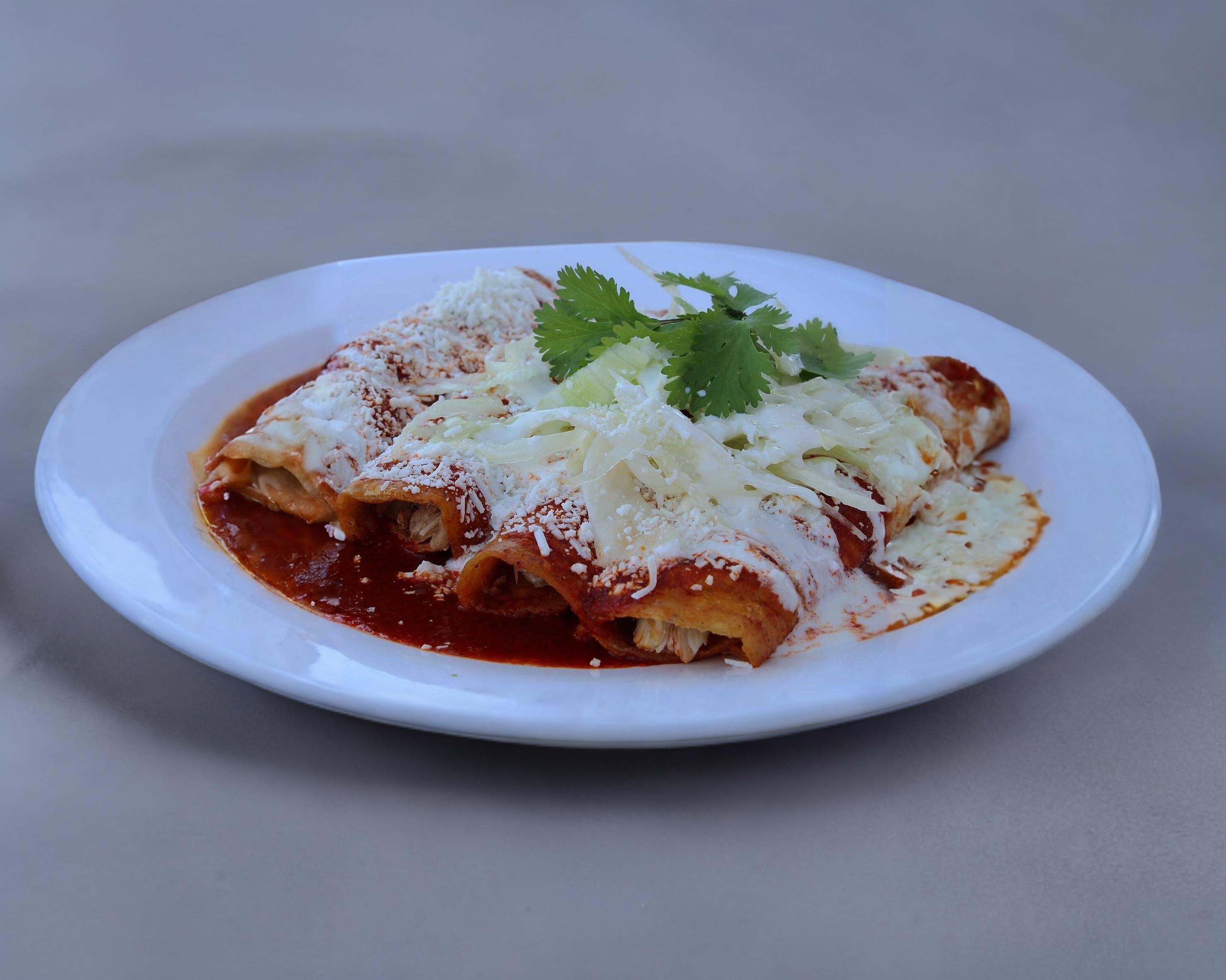 Enchiladas Rojas de Pollo*1 + Elige la Bebida de Tu Agrado*1