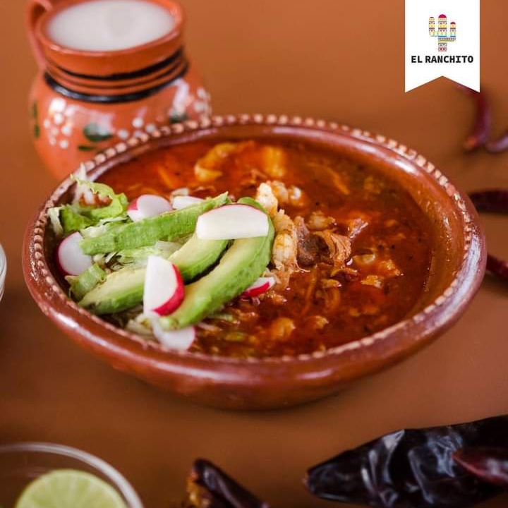 Acompañado de tostadas, aguacate, cebolla, limón, chicharrón y salsa.