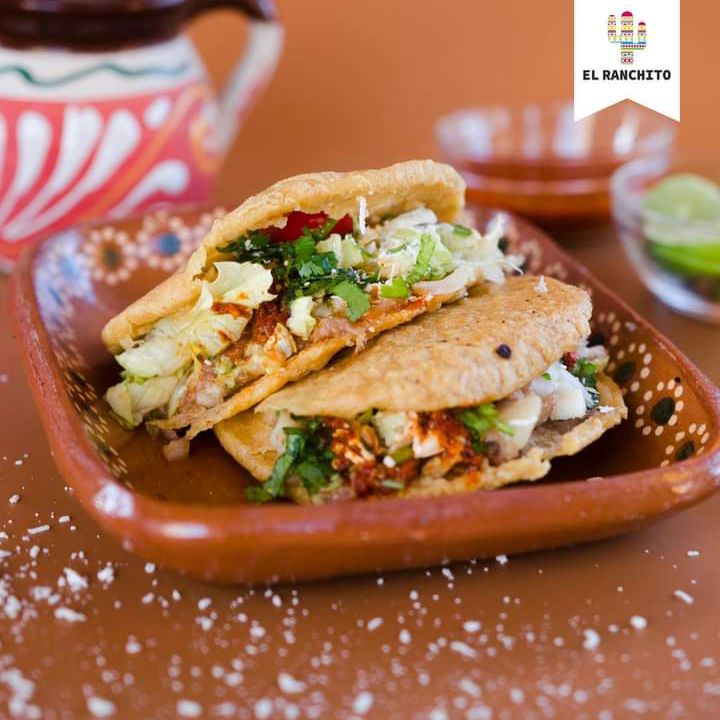 Gordita, flauta, enchilada roja y enchilada verde de deshebrada