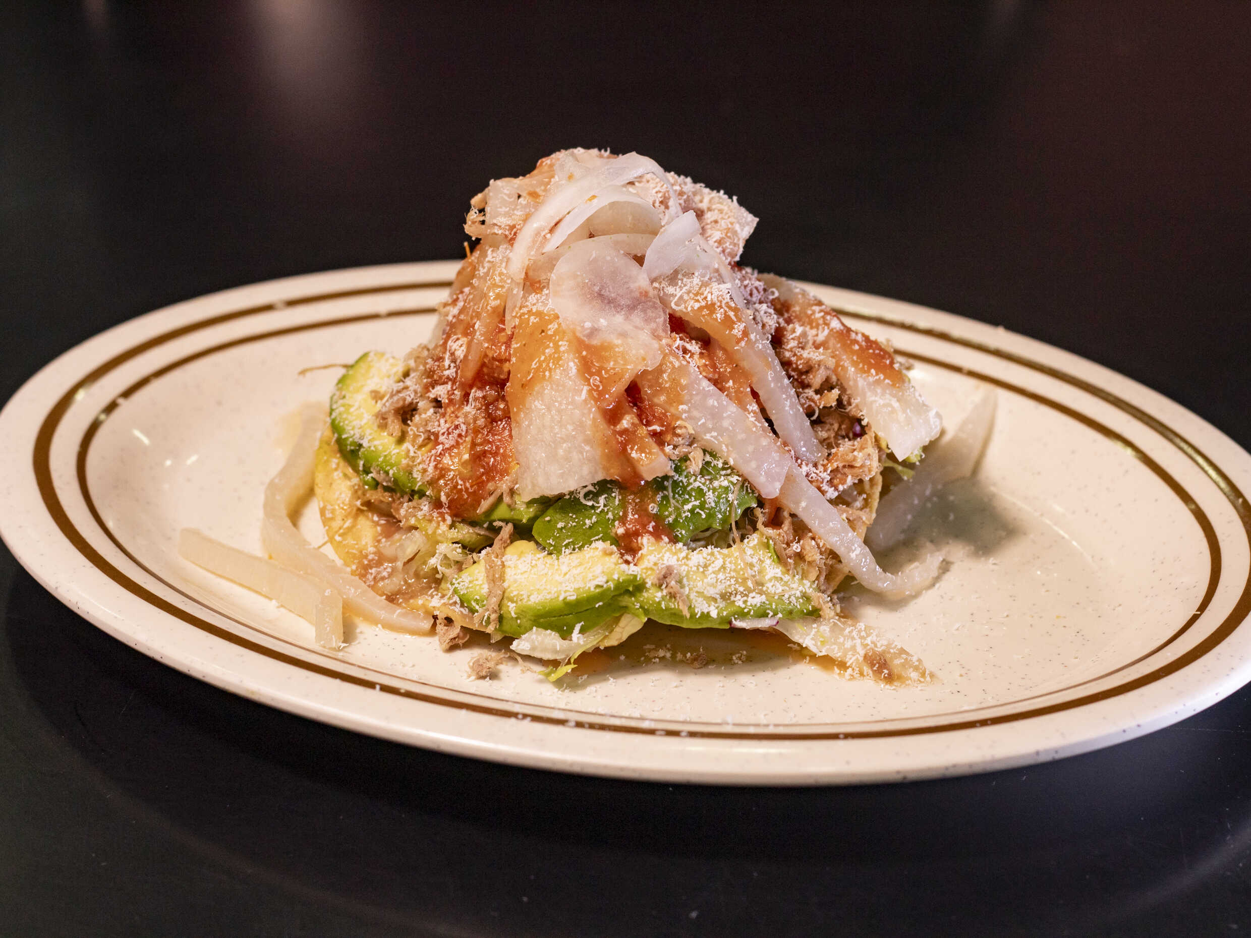 Tostada con Aguacate y Carne