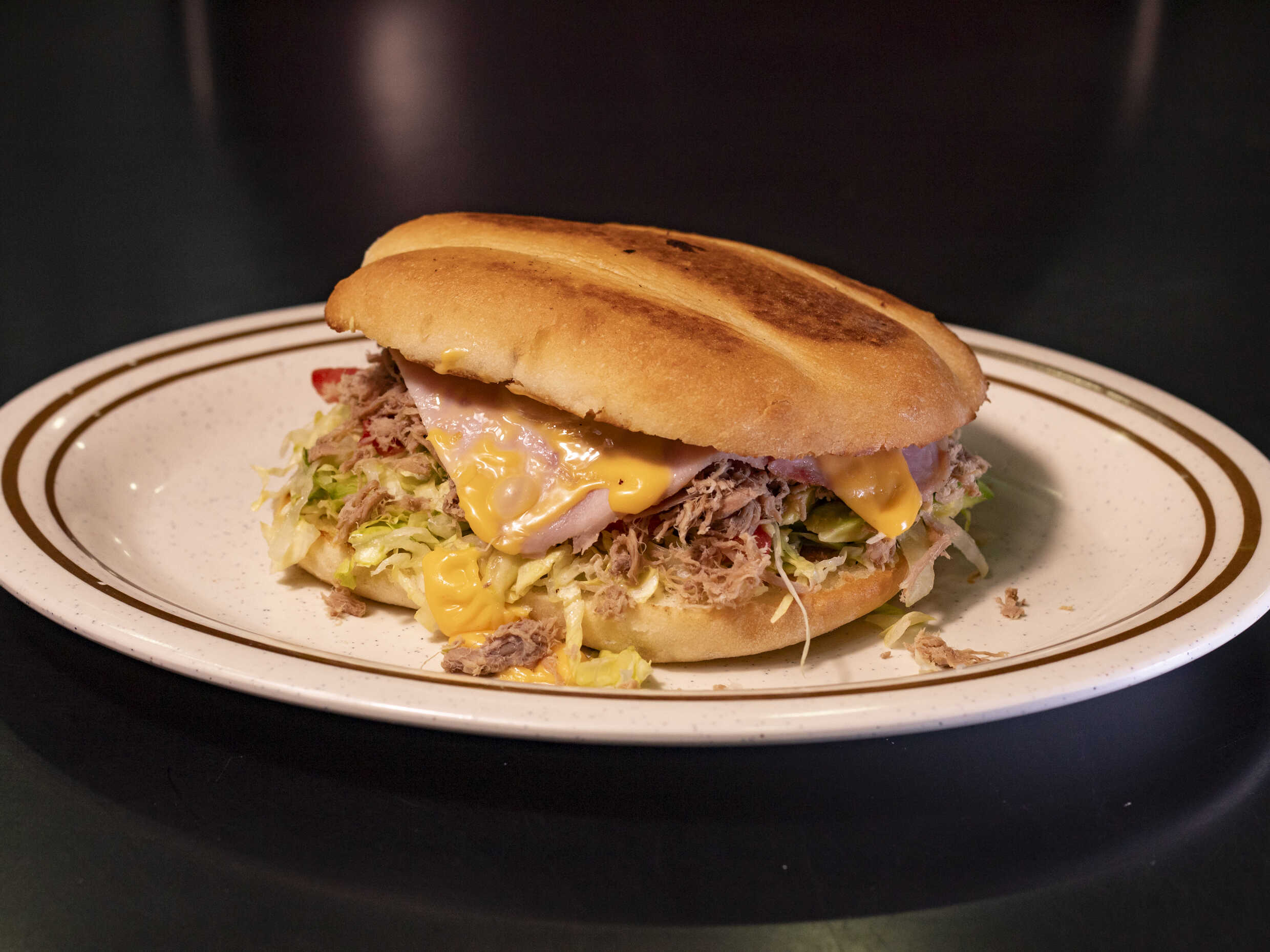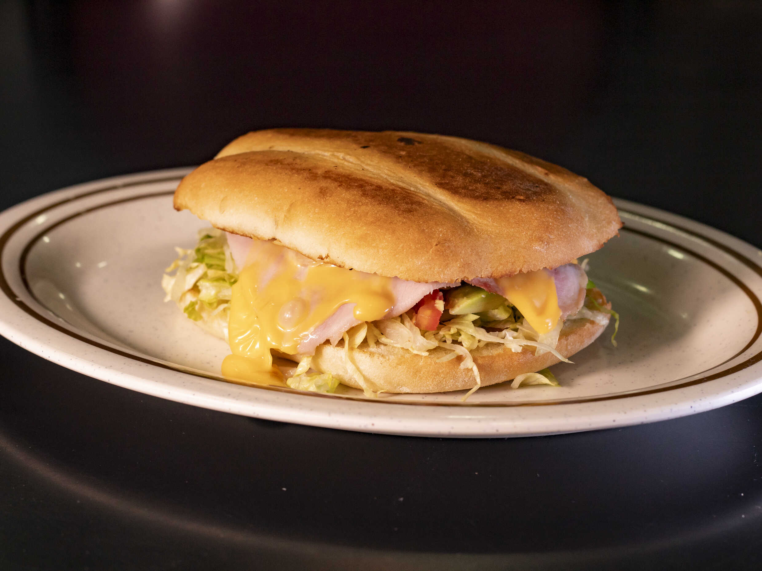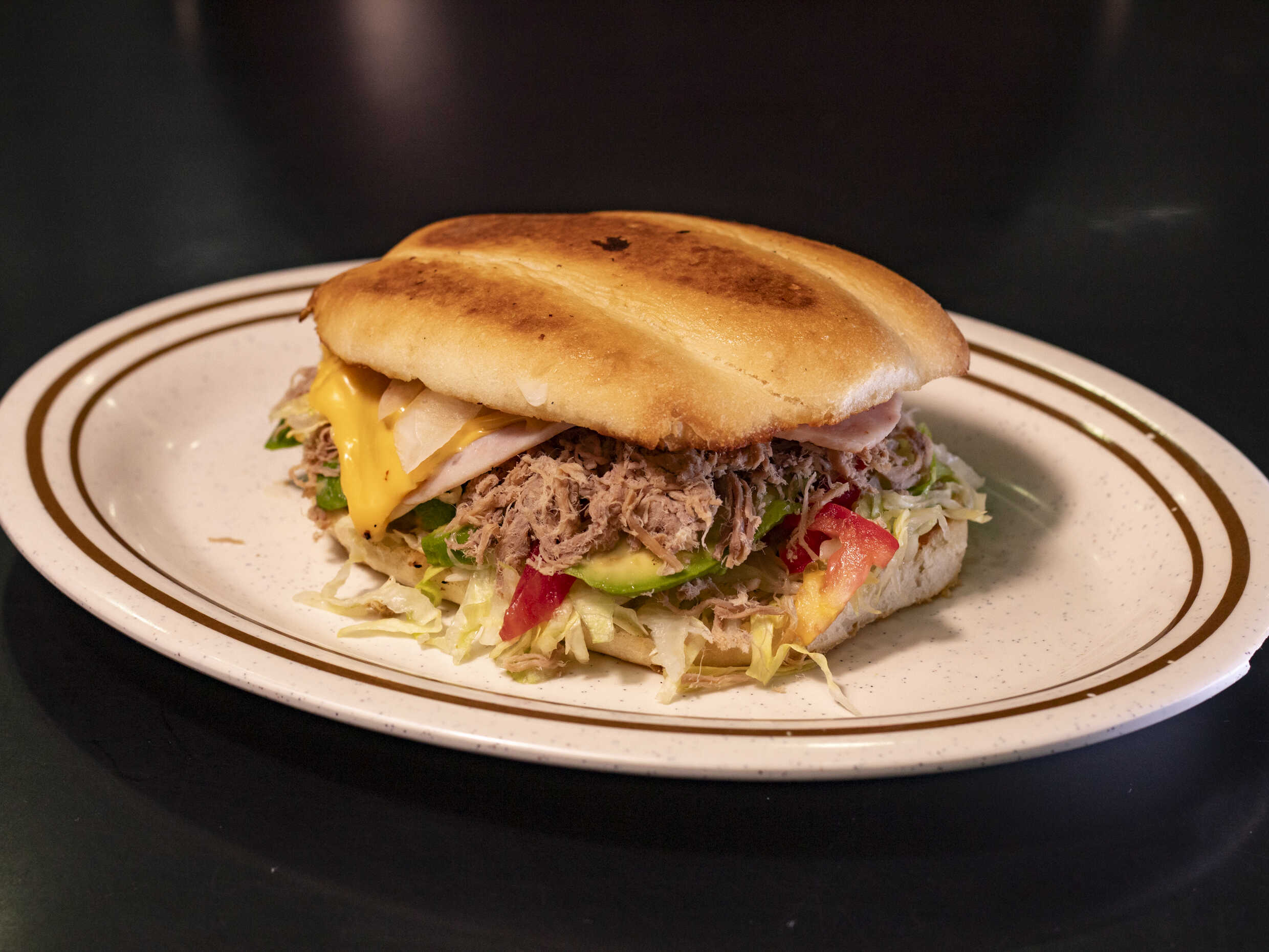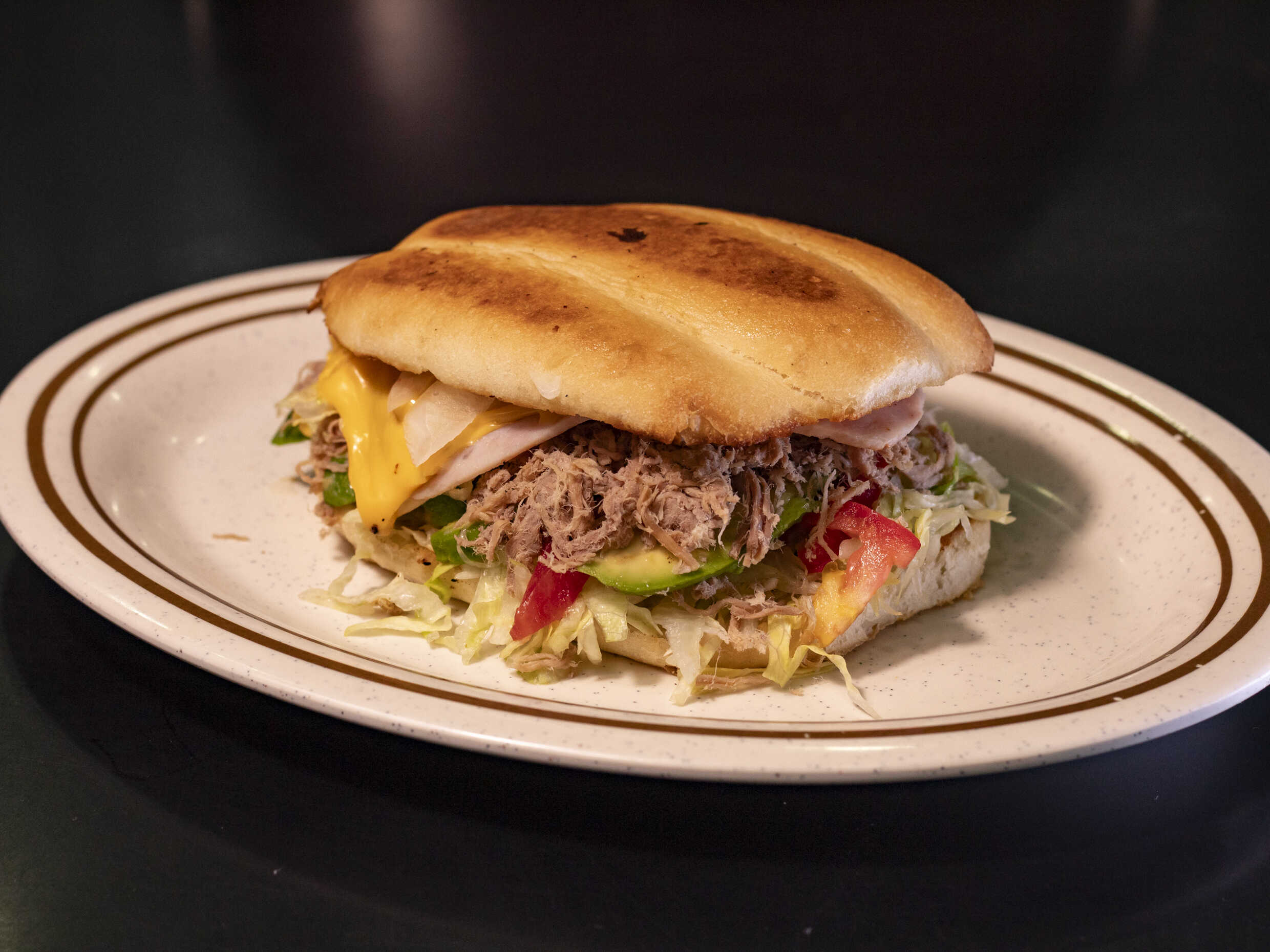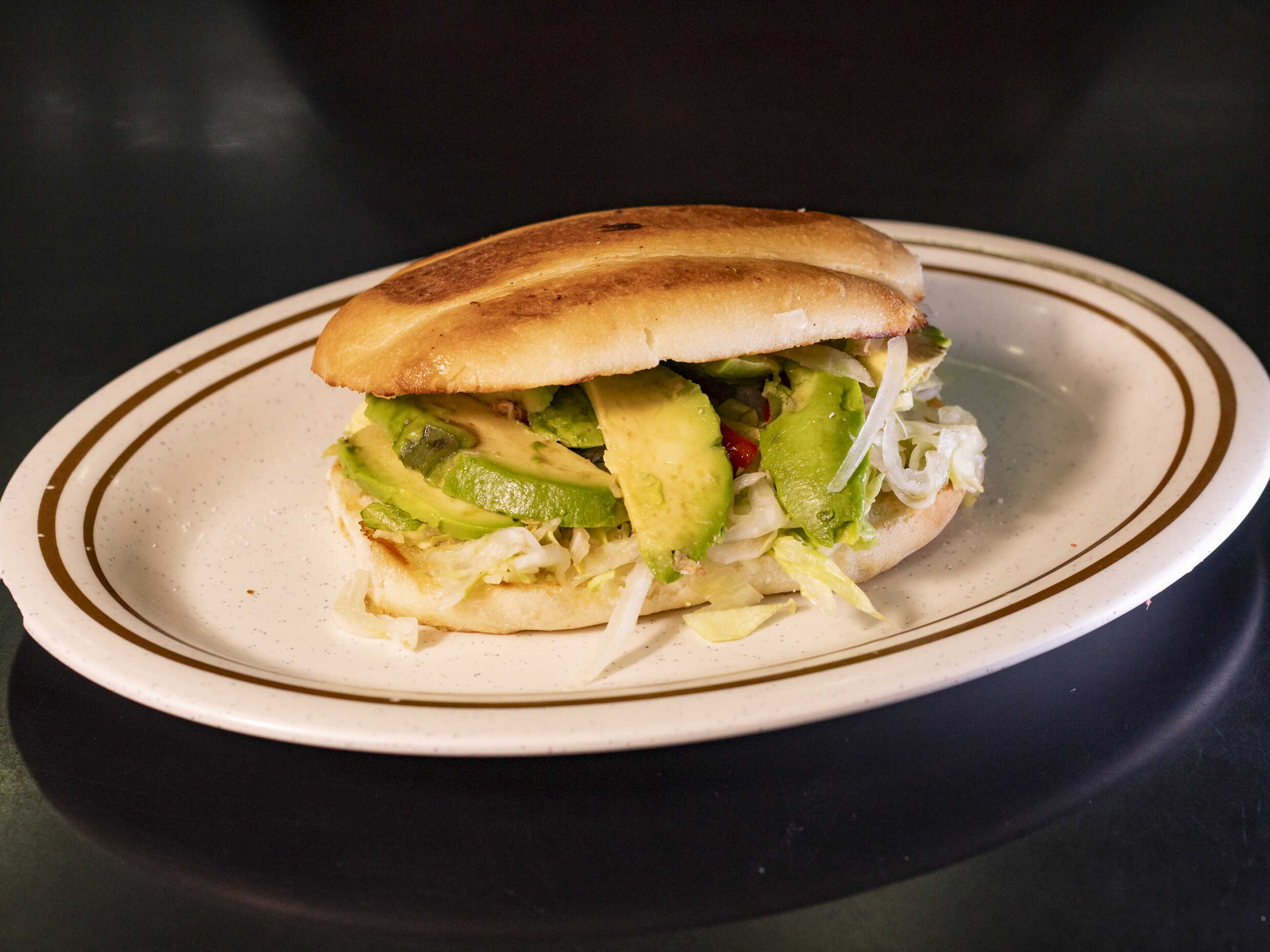 Carne, aguacate,jamón y queso tomate cebollá lechuga