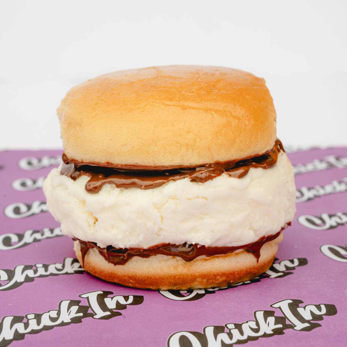 Delicioso sándwich con crema de Nutella y una bola de helado de vainilla, dulce y cremoso, el postre perfecto para consentirte.