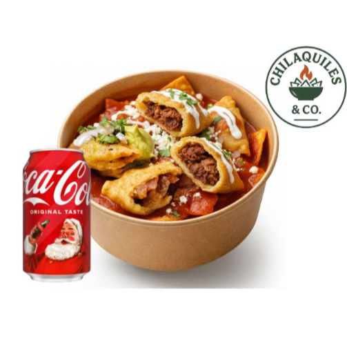 Chilaquiles Rellenos de Queso en Salsa Roja 🧀🔥*1 + COCA-COLA Classic*1