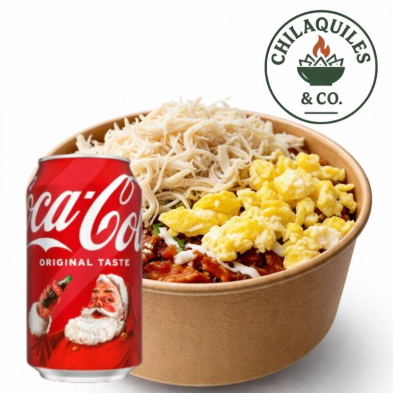 Huevo Revuelto*1 + Pollo*1 + Chilaquiles con Salsa Roja*1 + COCA-COLA Classic*1